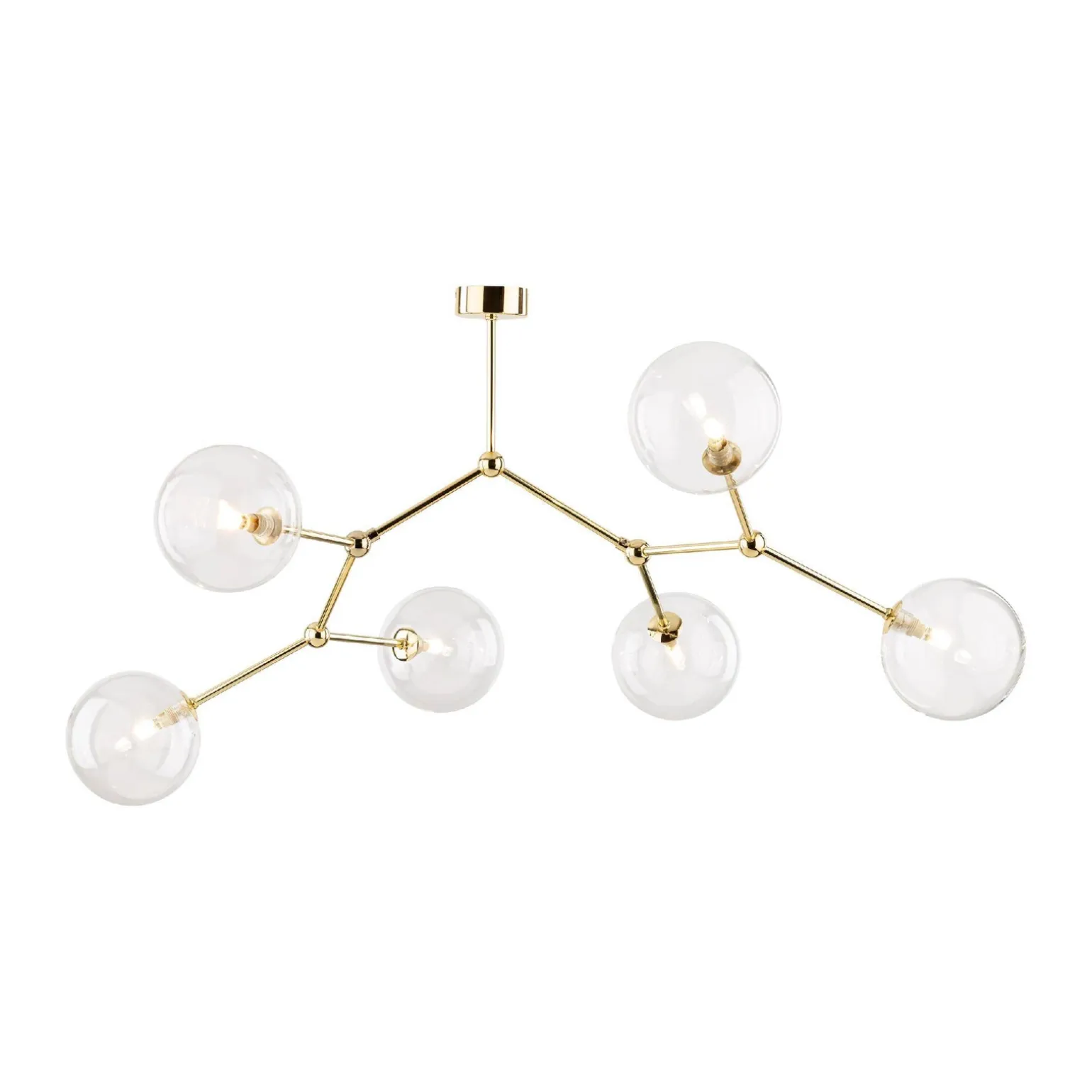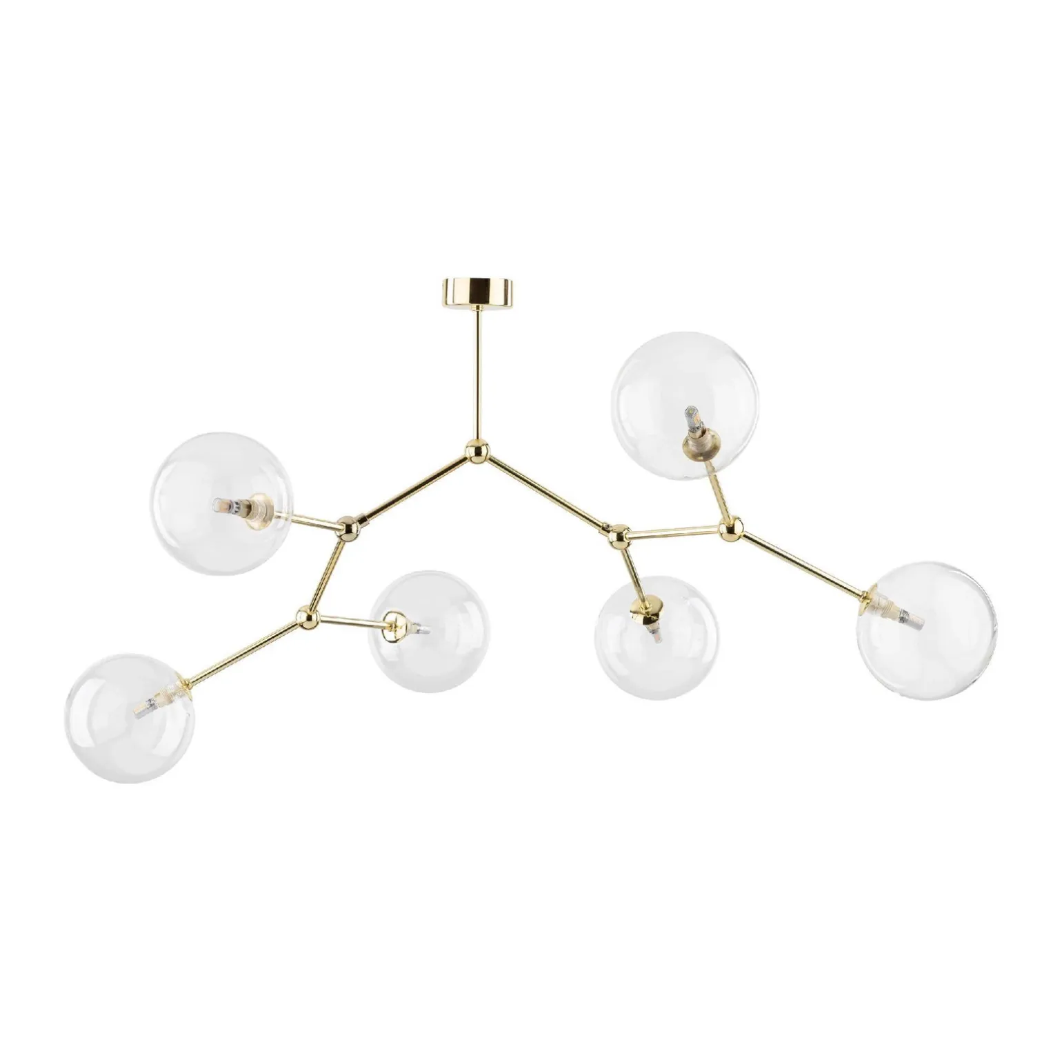 FAIRY GOLD to lampa sufitowa szklana, która za pomocą sześciu źródeł światła o trzonkach G9, dostarcza intensywne światło, które doskonale oświetli każdy zakamarek salonu. Dzięki transparentnym kloszom, światło rozprasza się w sposób subtelny, tworząc przyjemną aurę oraz dodając elegancji i luksusu wnętrzu.