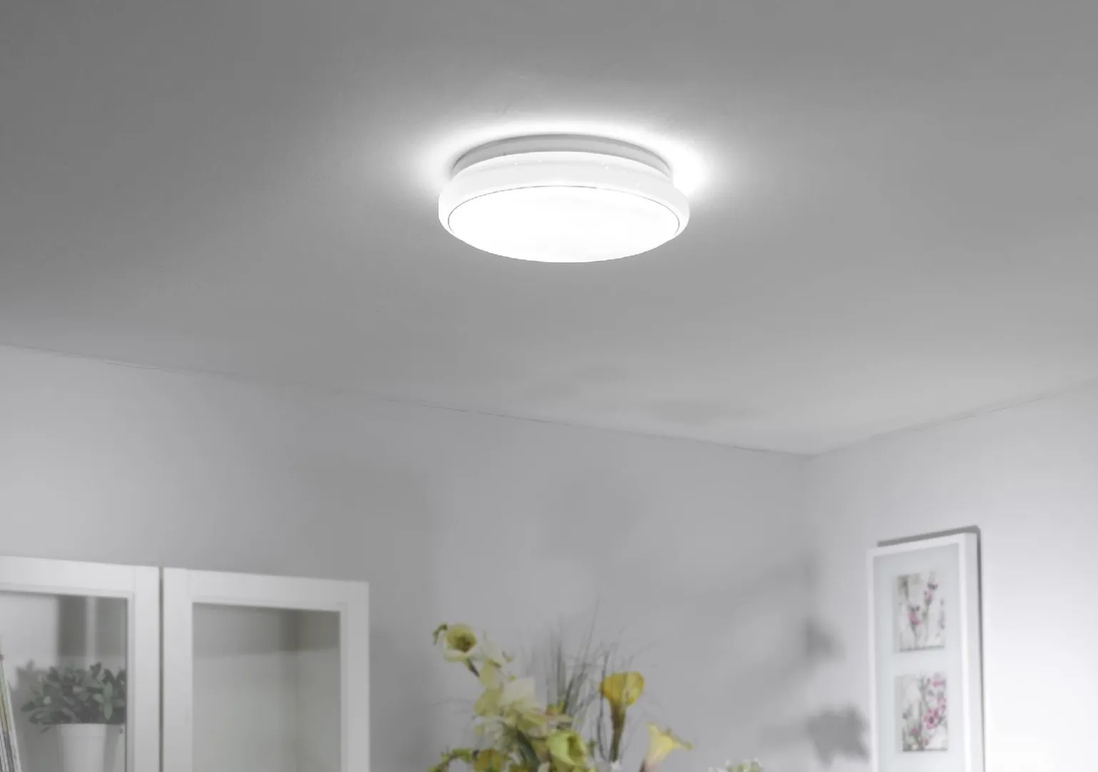 Lampa jest wykonana z wysokiej jakości tworzywa sztucznego, co zapewnia jej trwałość oraz elegancki wygląd. Okrągły typ oprawy i minimalistyczny design sprawiają, że idealnie wkomponuje się w różnorodne style wnętrz – zarówno nowoczesne, jak i klasyczne. Biały kolor sprawia, że lampa jest uniwersalna i pasuje do niemal każdego wystroju.