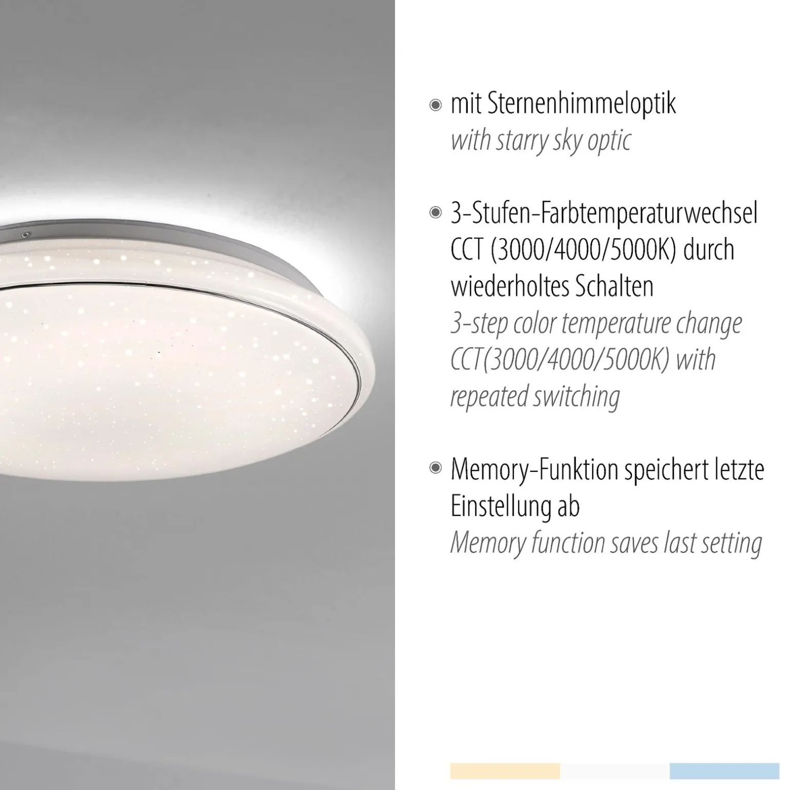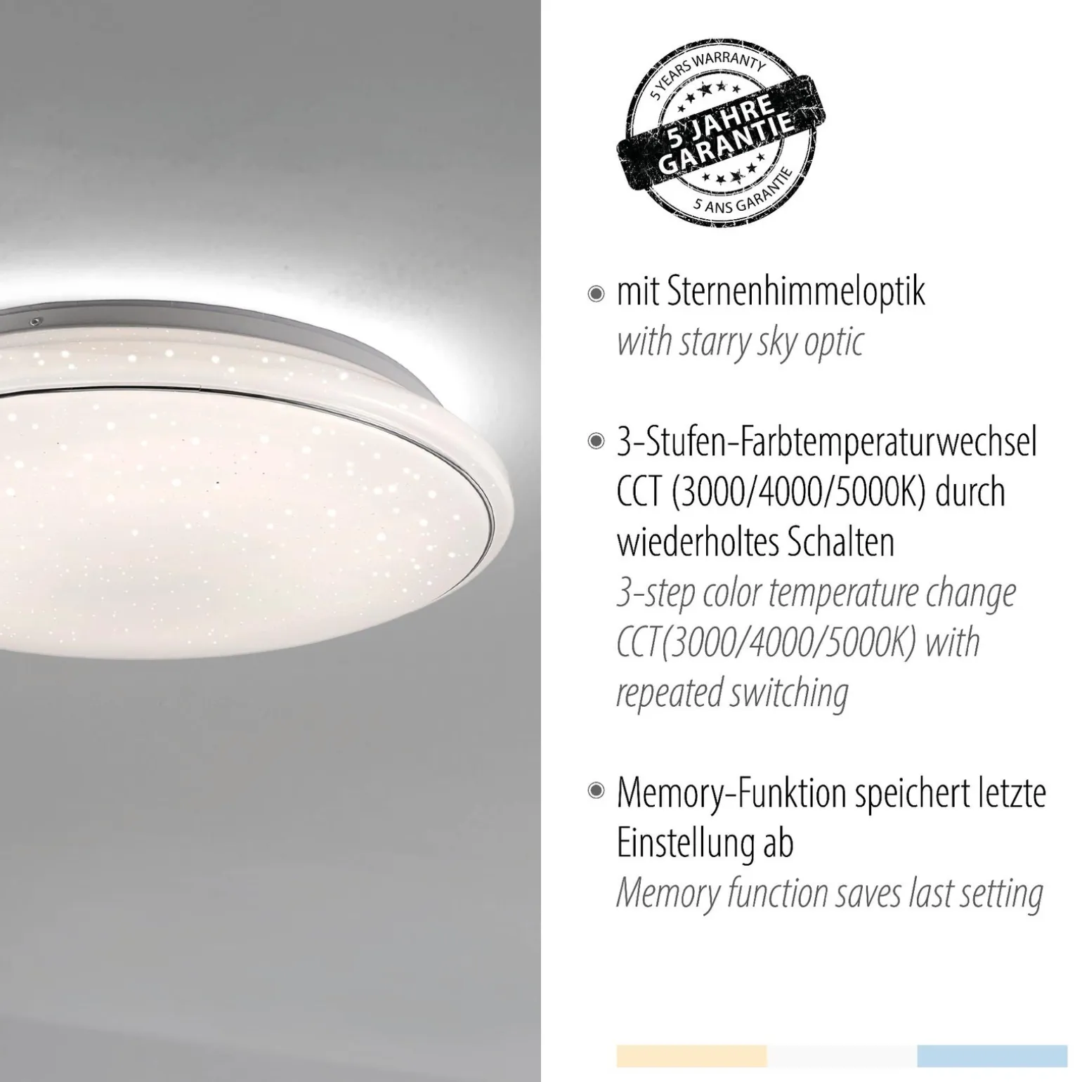 Jupiter lampa sufitowa generuje aż 4000 lumenów, co daje możliwość dostosowania oświetlenia do indywidualnych potrzeb. Dzięki zmiennej temperaturze barwy (3000-5000 K), użytkownik ma możliwość wyboru między ciepłym a zimnym światłem, idealnie dostosowując atmosferę w każdym pomieszczeniu. Lampa posiada również nowoczesny przełącznik CCT, który umożliwia łatwe zarządzanie barwą światła. Zintegrowany LED o maksymalnej mocy 32W zapewnia nie tylko oszczędność energii, ale również długotrwałe działanie.