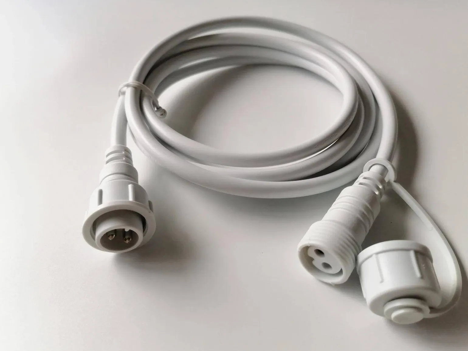 Wysokiej jakości kabel został zaprojektowany z myślą o lampach zewnętrznych, co sprawia, że jest odporny na różnorodne warunki atmosferyczne. Kolor biały sprawia, że kabel doskonale komponuje się z otoczeniem, a przy tym nie odciąga od uwagi od piękna lamp girlandowych. Dzięki swojej budowie, produkt cechuje się wysoką trwałością, co jest kluczowe w przypadku akcesoriów użytkowanych na zewnątrz.