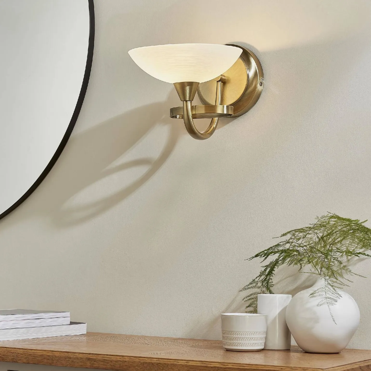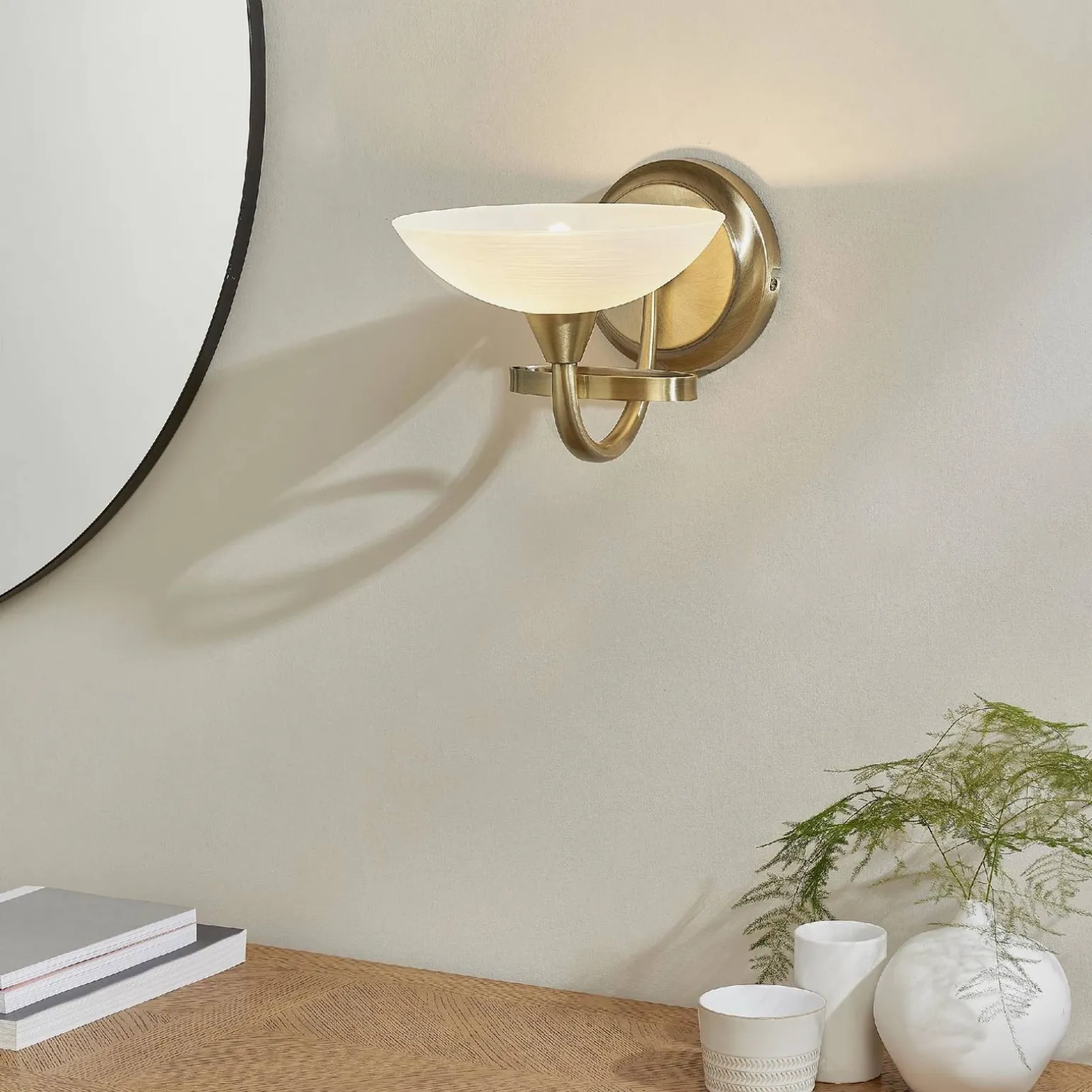 Kinkiet Cagney od marki Endon to elegancka oprawa oświetleniowa, która doskonale wpisuje się w styl retro. Model o kodzie CAGNEY-1WBAB charakteryzuje się klasycznym, mosiężnym wykończeniem oraz białym szkłem, co sprawia, że jest idealnym dodatkiem do każdego wnętrza. Jego ciepłe, antyczne kolory wprowadzą przytulną atmosferę, a subtelny design z pewnością przyciągnie uwagę gości. Kinkiet ten doskonale sprawdzi się w salonie, sypialni czy korytarzu, nadając im wyjątkowego charakteru.