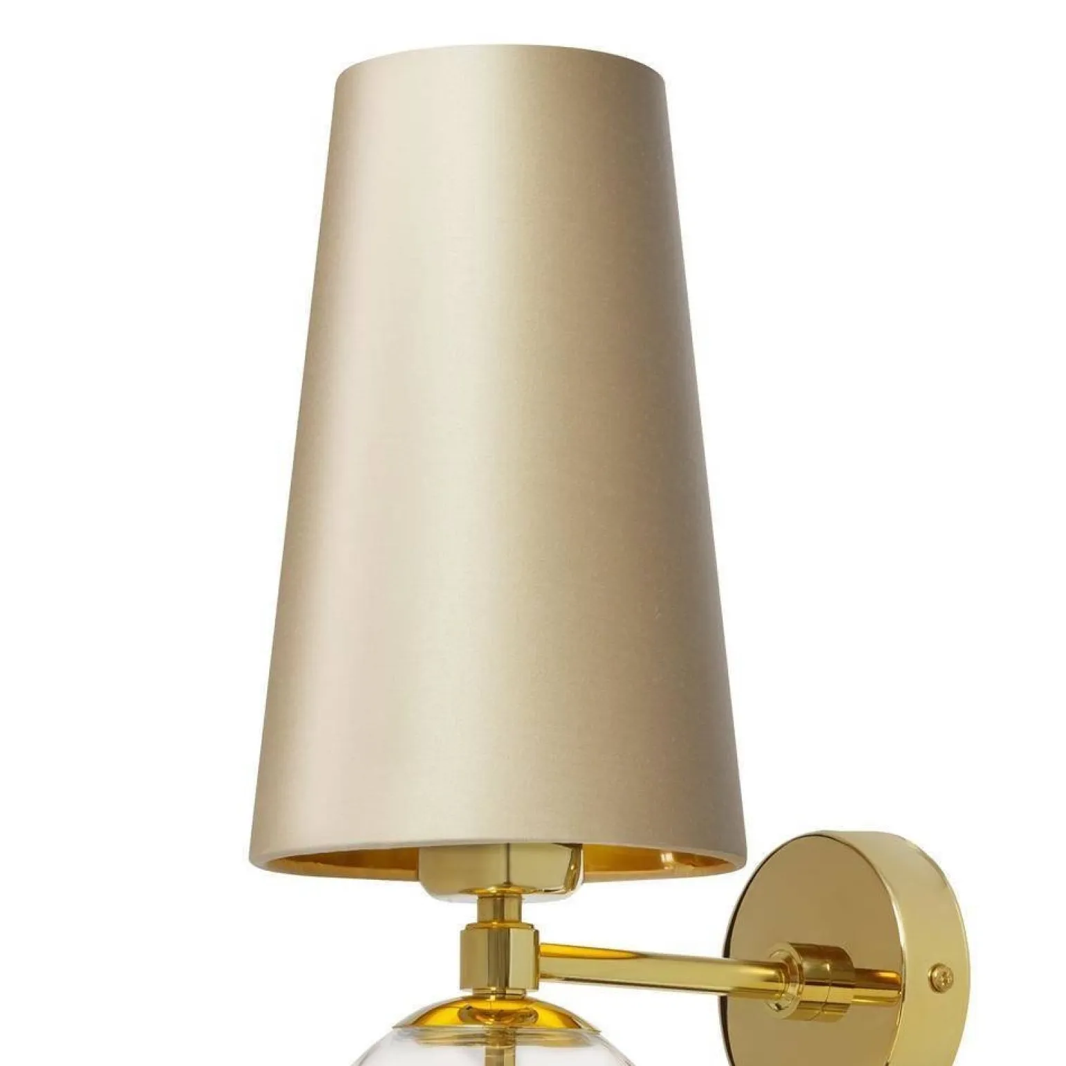 Kinkiet COCO wyróżnia się swoim szampańskim kloszem, który w połączeniu ze złotymi elementami tworzy harmonijną całość. Taka kolorystyka idealnie wpisuje się w trend stylu Hampton, który łączy elegancję z nadmorskim klimatem. Elementy wykonane z szkła, tkaniny i metalu zapewniają trwałość oraz wysoką jakość wykonania. Dzięki temu, kinkiety z abażurem są nie tylko piękne, ale również funkcjonalne.