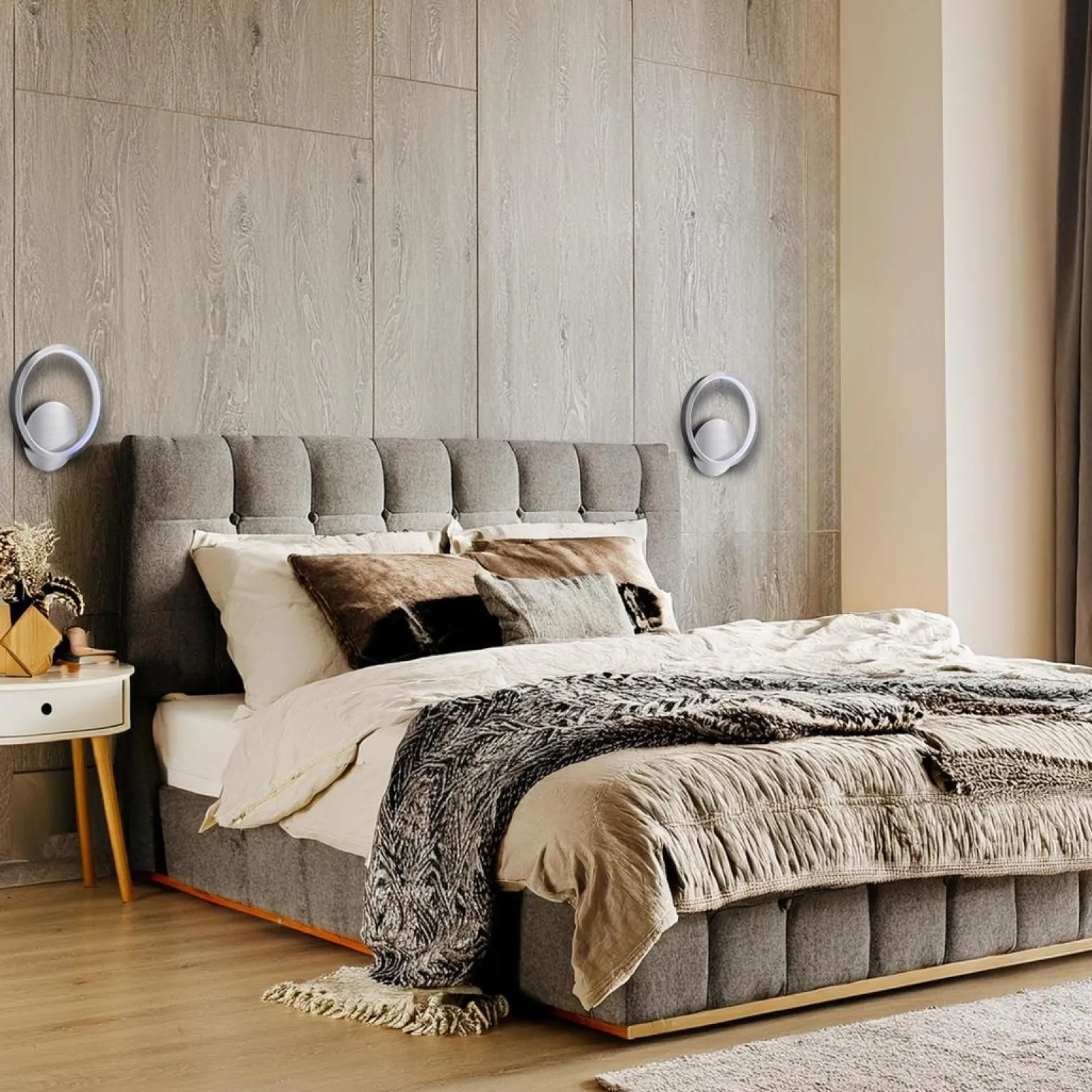Podczas wyboru oświetlenia do sypialni warto zwrócić uwagę na kinkiety sypialniane, które pełnią nie tylko funkcję praktyczną, ale także estetyczną. Kinkiet HOOP CHROME to propozycja dla tych, którzy cenią sobie styl i nowoczesne rozwiązania. Jego delikatne formy i świetlne pierścienie tworzą wyjątkową grę światła, która zmienia charakter każdego wnętrza, wprowadzając do niego przytulność oraz elegancję.