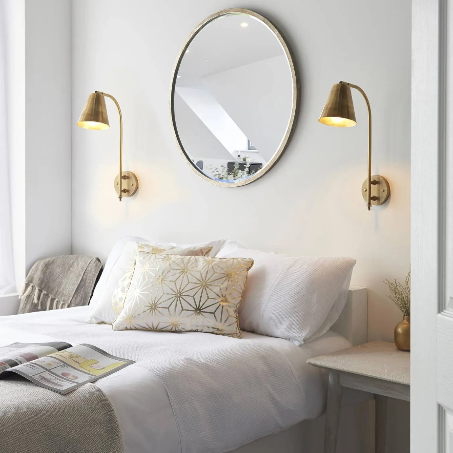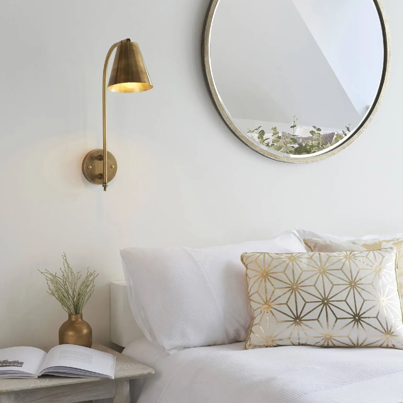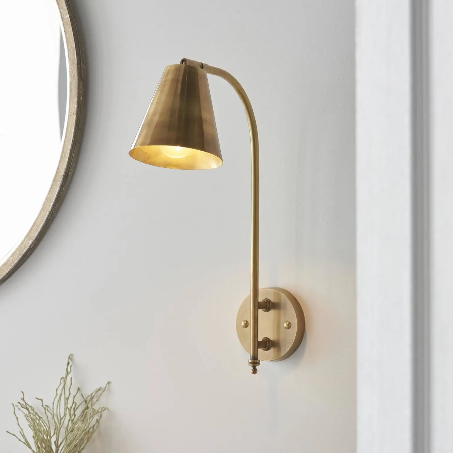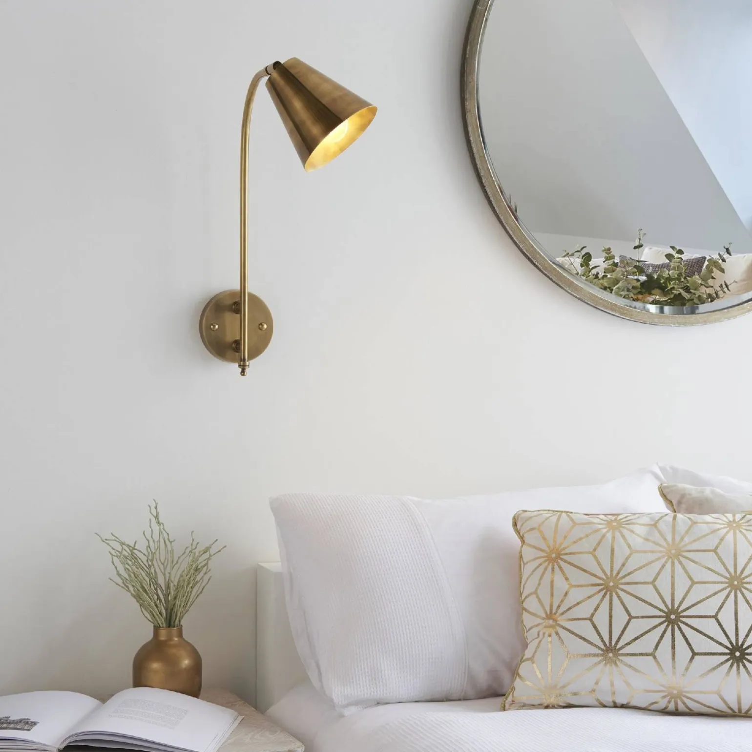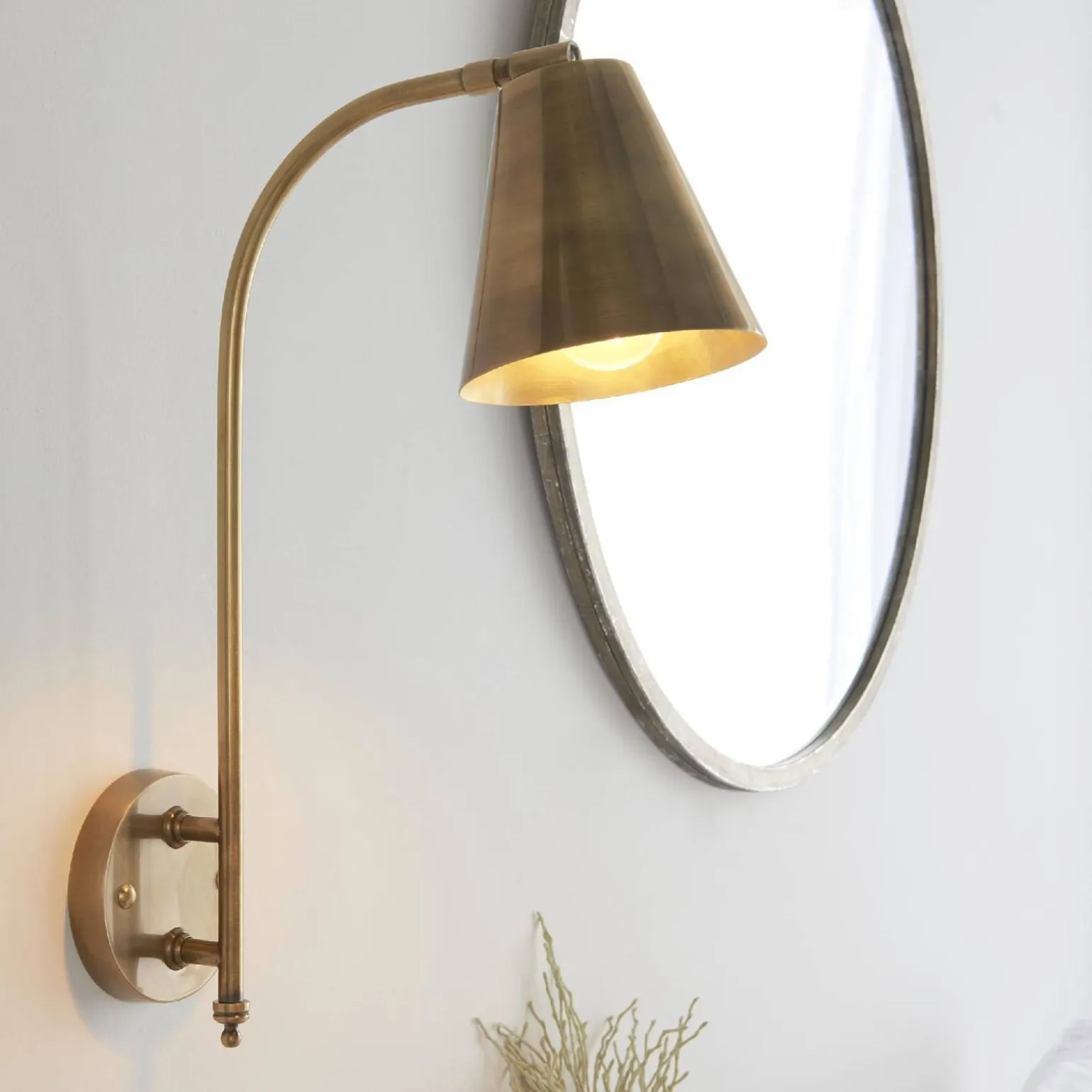Oprawa Radha wyróżnia się swoim mosiądzem antycznym, który nadaje jej niepowtarzalny charakter. Dzięki temu kinkiet idealnie komponuje się z różnorodnymi aranżacjami, dodając im ciepła i stylu. Kolor mosiądz jest na czasie i pasuje zarówno do klasycznych, jak i nowoczesnych wnętrz, co czyni tę oprawę wyjątkowo uniwersalnym rozwiązaniem.