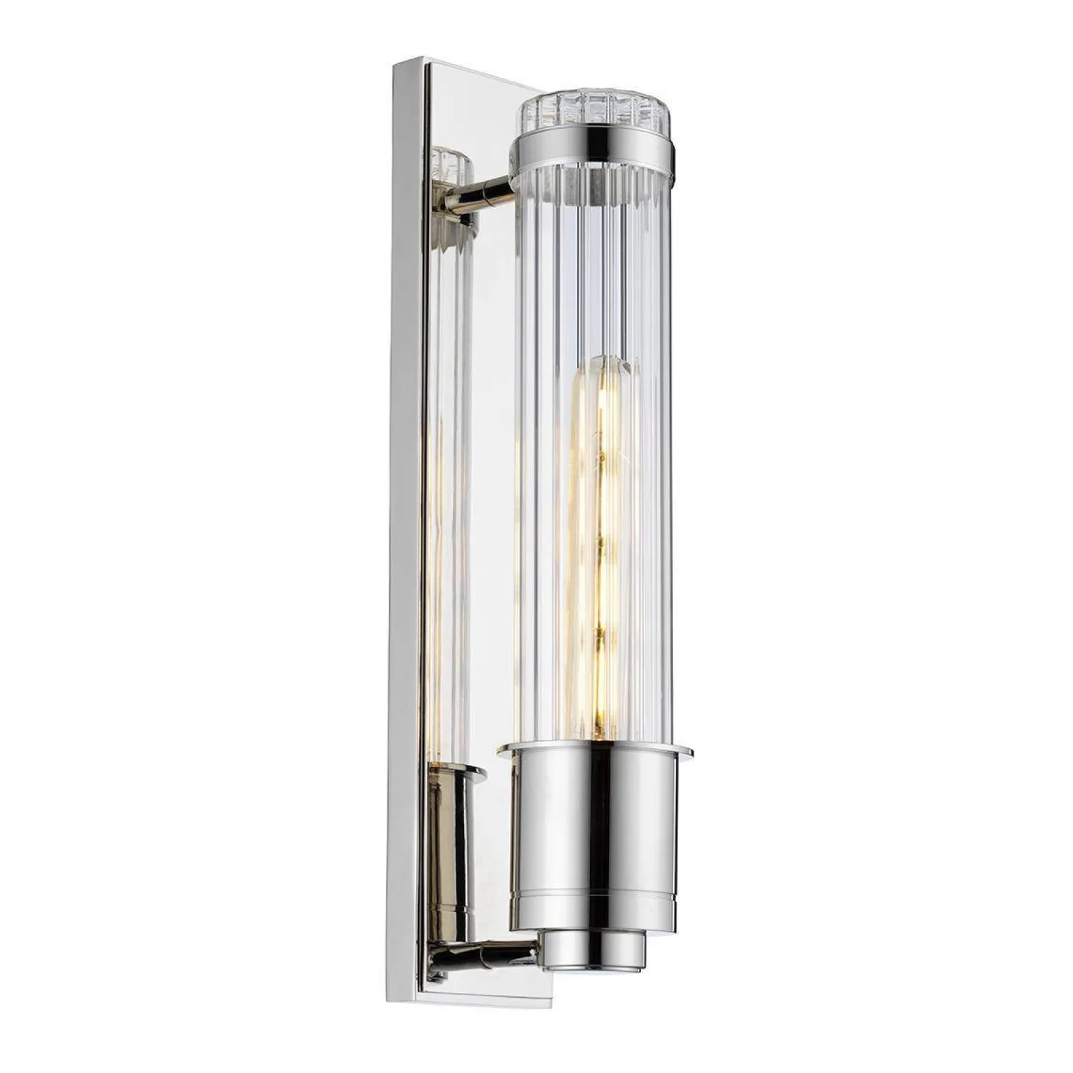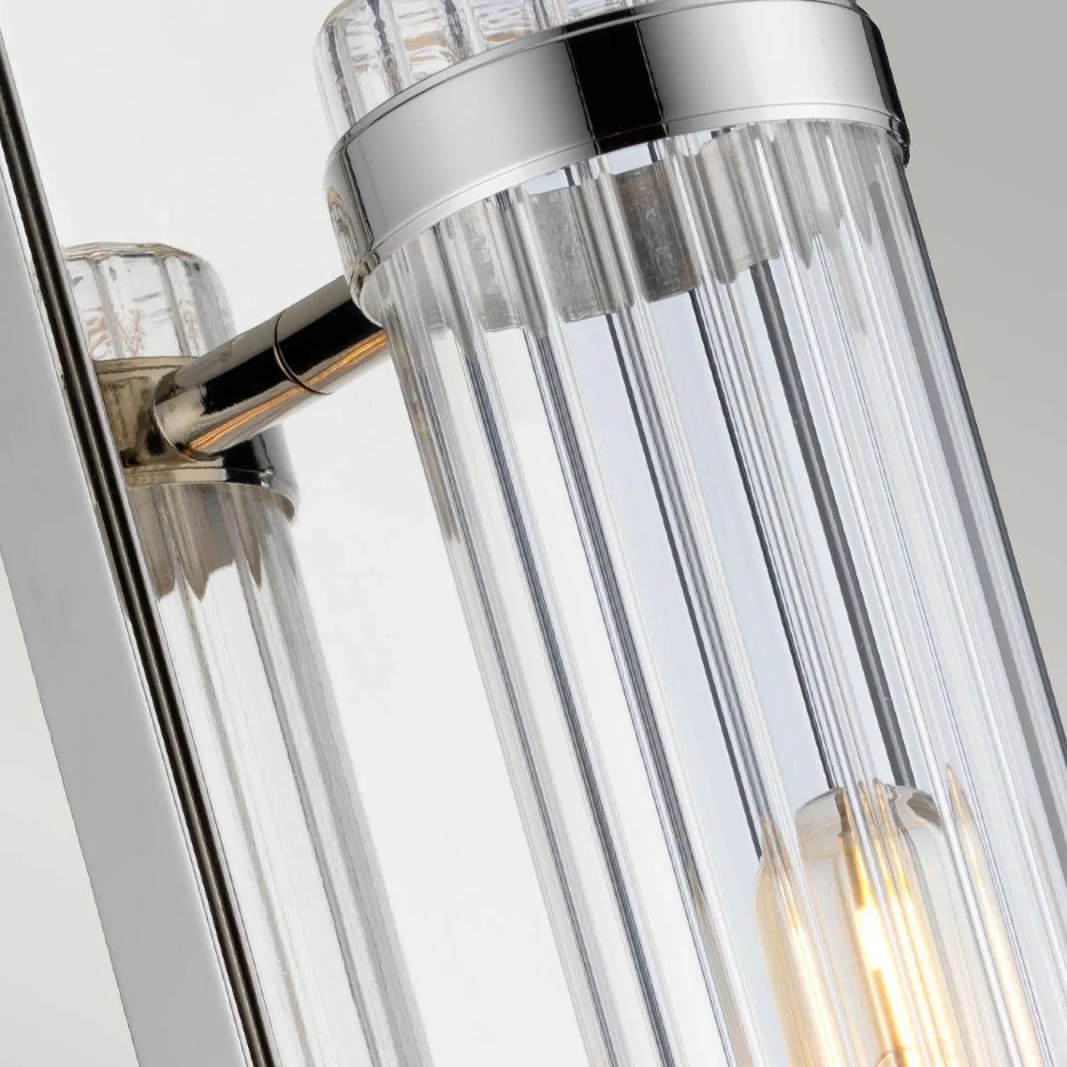 Kinkiet Wellington marki Quintiesse to wyjątkowe oświetlenie, które łączy w sobie nowoczesny design oraz funkcjonalność. Z idealnym połączeniem polerowanego chromu i szlachetnego szkła, ten kinkiet wewnętrzny doskonale wpisał się w trendy nowoczesnych wnętrz, zwłaszcza w stylu industrialnym loft. Dzięki swojemu minimalistycznemu wyglądowi, doskonale nadaje się do zastosowania w różnych pomieszczeniach, takich jak łazienka czy strefy przy lustrze.