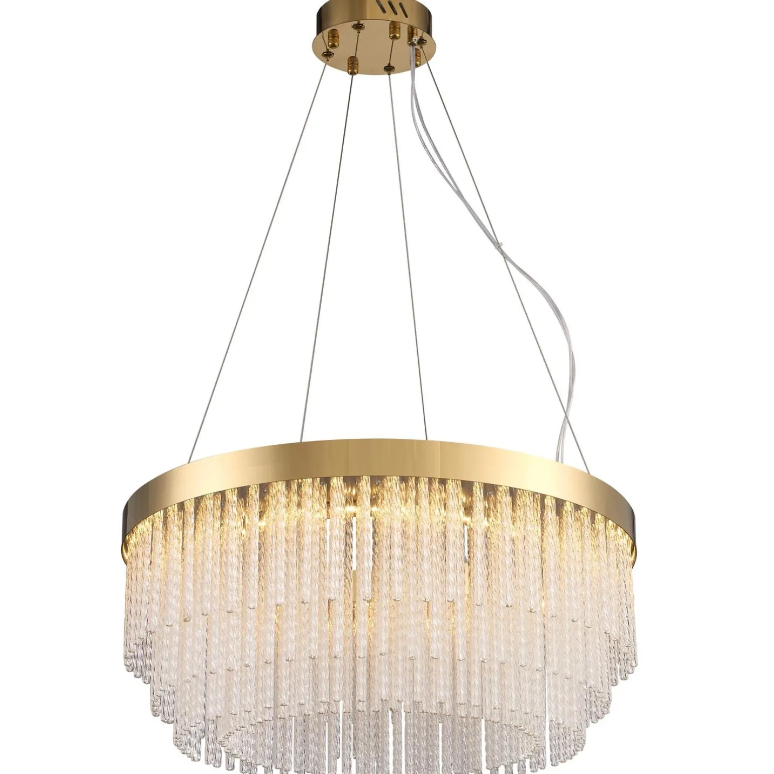 Lampa kryształowy żyrandol GLORIA LED to połączenie elegancji i nowoczesności, które doda wyjątkowego charakteru każdego wnętrzu. Wykonana z wysokiej jakości metalu i kryształu, lampa zachwyca swoim złotym kolorem, który doskonale wpisuje się w obecne trendy. O długości 60 cm, jest idealnym wyborem do różnorodnych pomieszczeń – od salonów, przez jadalnie, aż po eleganckie wnętrza hoteli i restauracji.