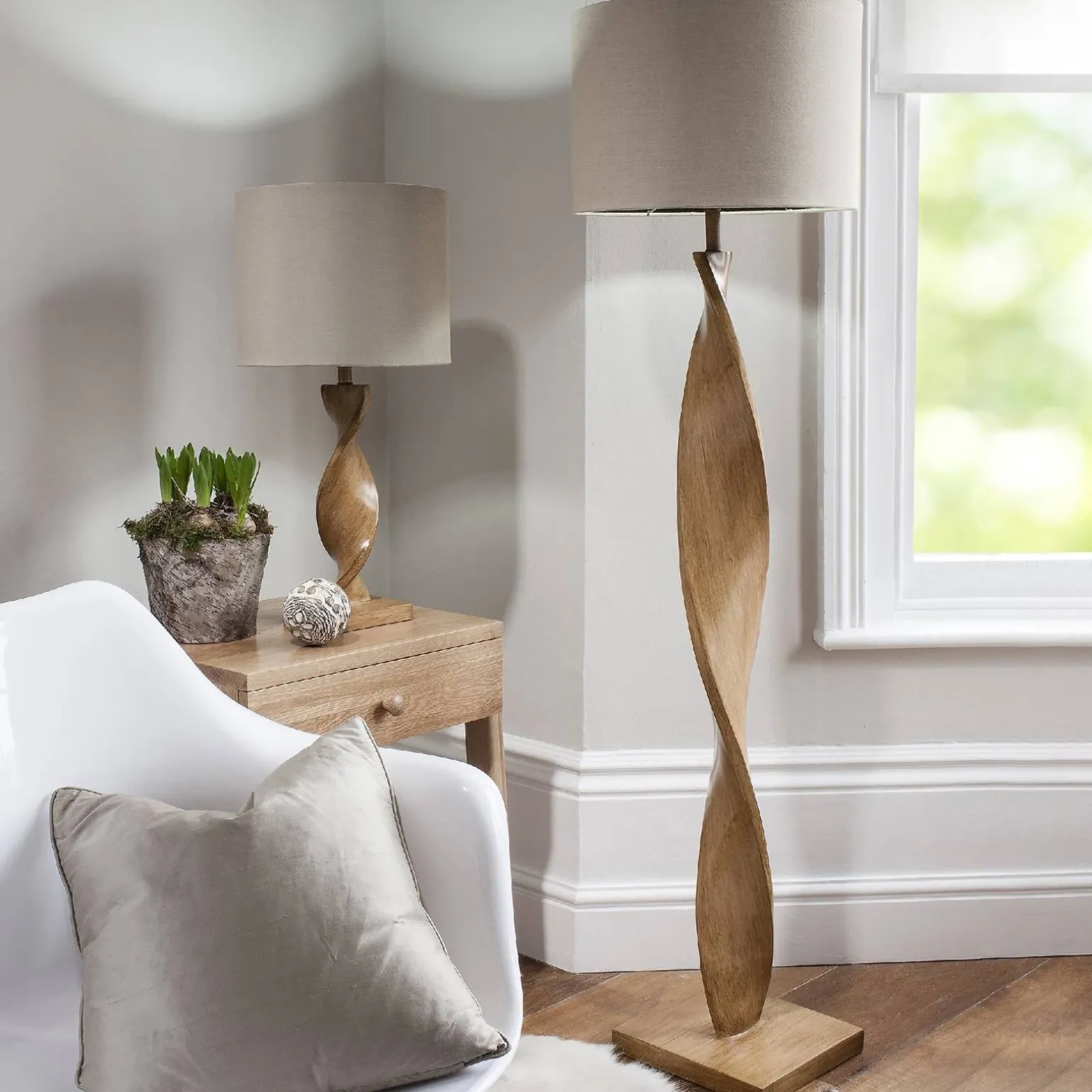 Lampa Podłogowa Abia (95454) marki Endon to wyjątkowy element wyposażenia wnętrz, który łączy w sobie nowoczesny design z klasycznymi akcentami. Jej stylowa konstrukcja oraz wyjątkowe materiały sprawiają, że idealnie wpisuje się w trendy aranżacyjne, wprowadzając do każdego pomieszczenia niepowtarzalny klimat. Dzięki zastosowaniu żywicy imitującej dąb, lampa emanuje ciepłem oraz elegancją, a naturalny len abażura dodaje jej lekkości i subtelności. To doskonały wybór do salonu, gdzie stanie się nie tylko źródłem światła, ale również interesującą dekoracją.