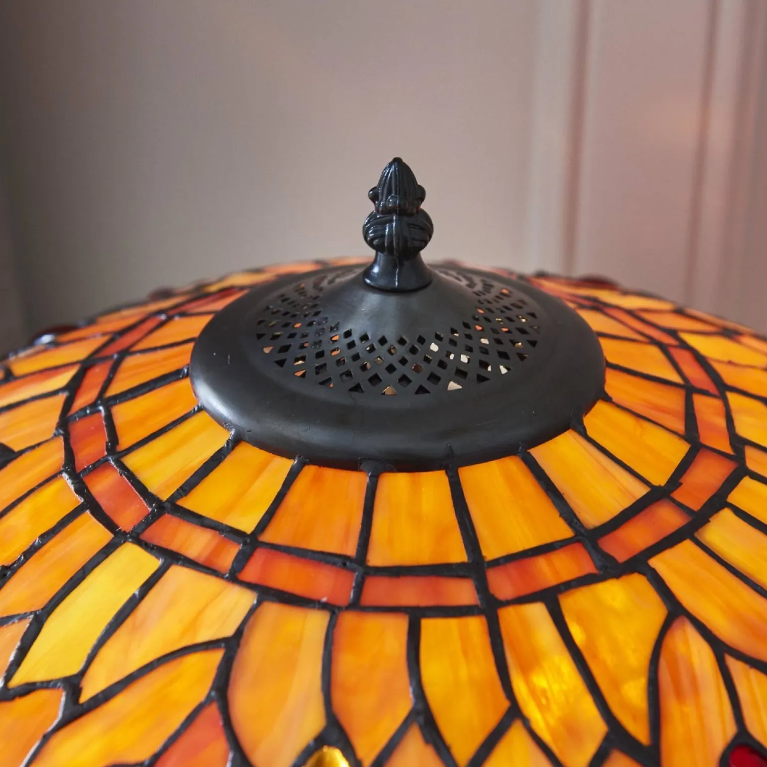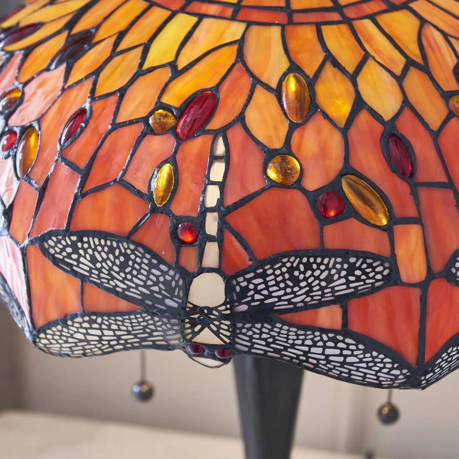 Najważniejszą cechą Lampy Stołowej Dragonfly flame jest jej niezwykły design, który nawiązuje do stylu Art Deco i Retro. Dzięki różnorodnym kolorom i formom lampy, idealnie wpisuje się w trend Hampton, łącząc elegancję z przytulnością. Brązowy kolor oprawy doskonale harmonizuje z klasycznymi i nowoczesnymi aranżacjami wnętrz, stanowiąc idealny element dekoracyjny.