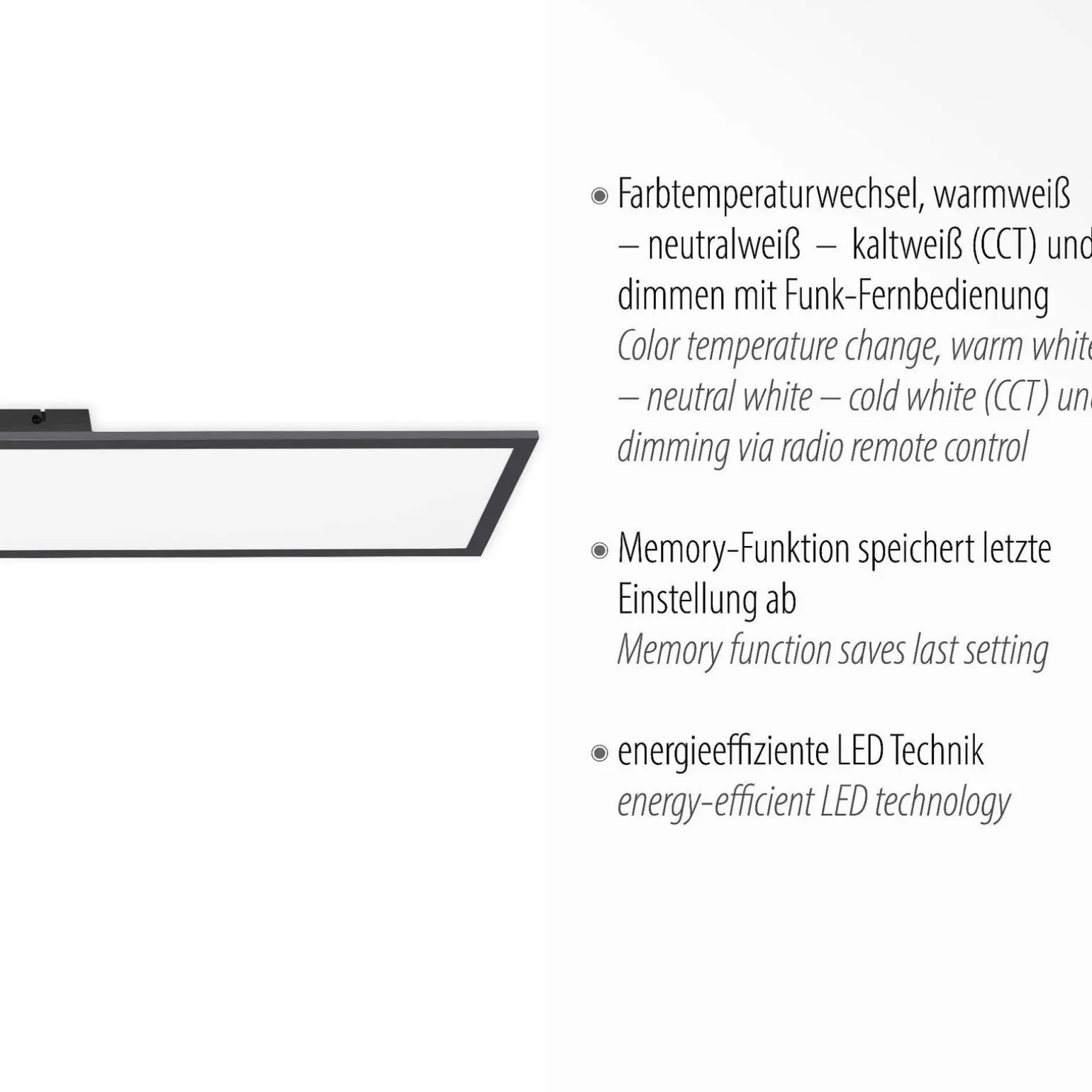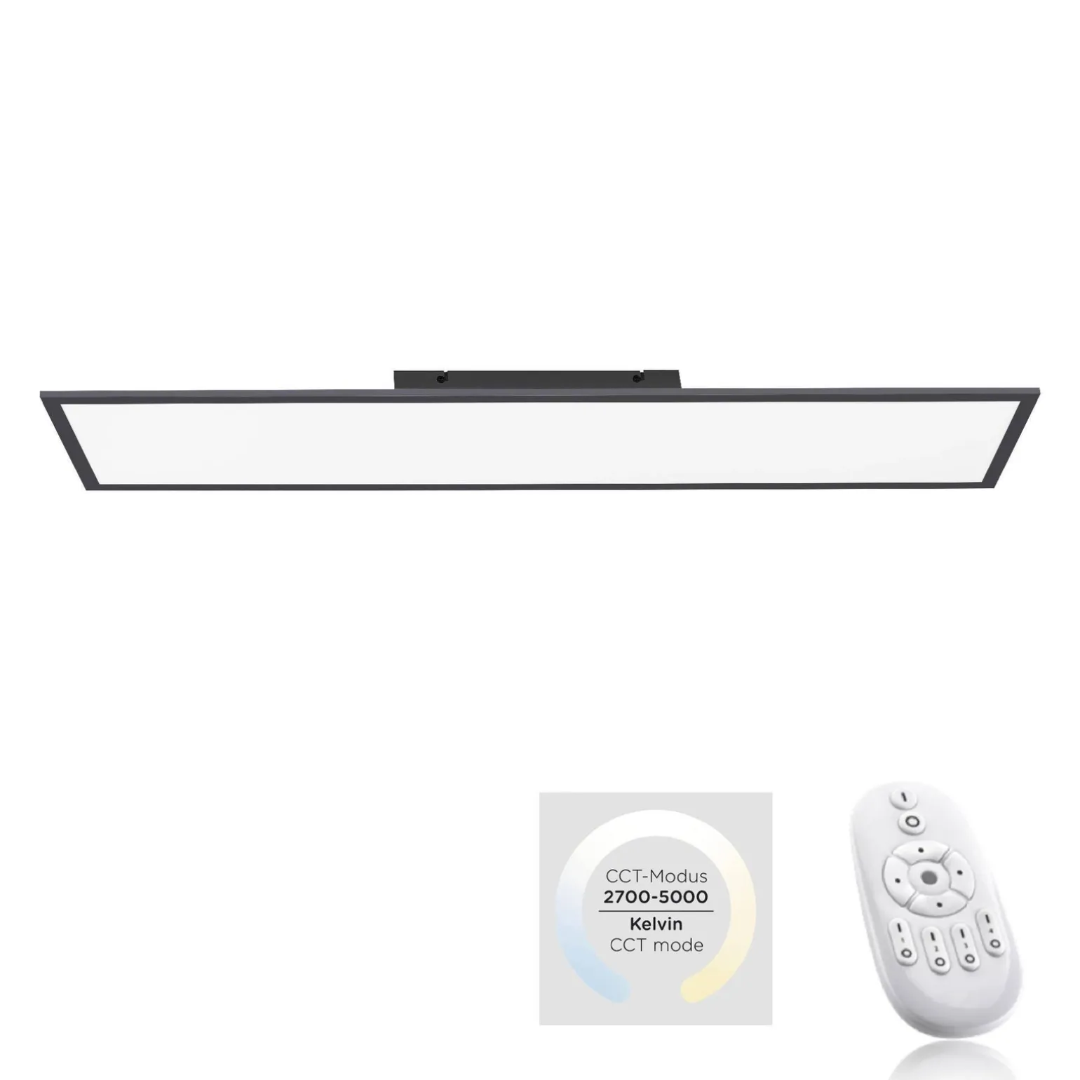 Lampa FLAT wyposażona jest w funkcję ściemniania oraz przełącznik CCT, który umożliwia dostosowanie temperatury barwowej w zakresie od 2700K do 5000K. Dzięki temu możesz swobodnie regulować nastrój w swoim wnętrzu, dostosowując oświetlenie do pory dnia czy okoliczności. W zestawie znajduje się również pilot, co znacząco ułatwia obsługę lampy, a także podnosi komfort użytkowania.