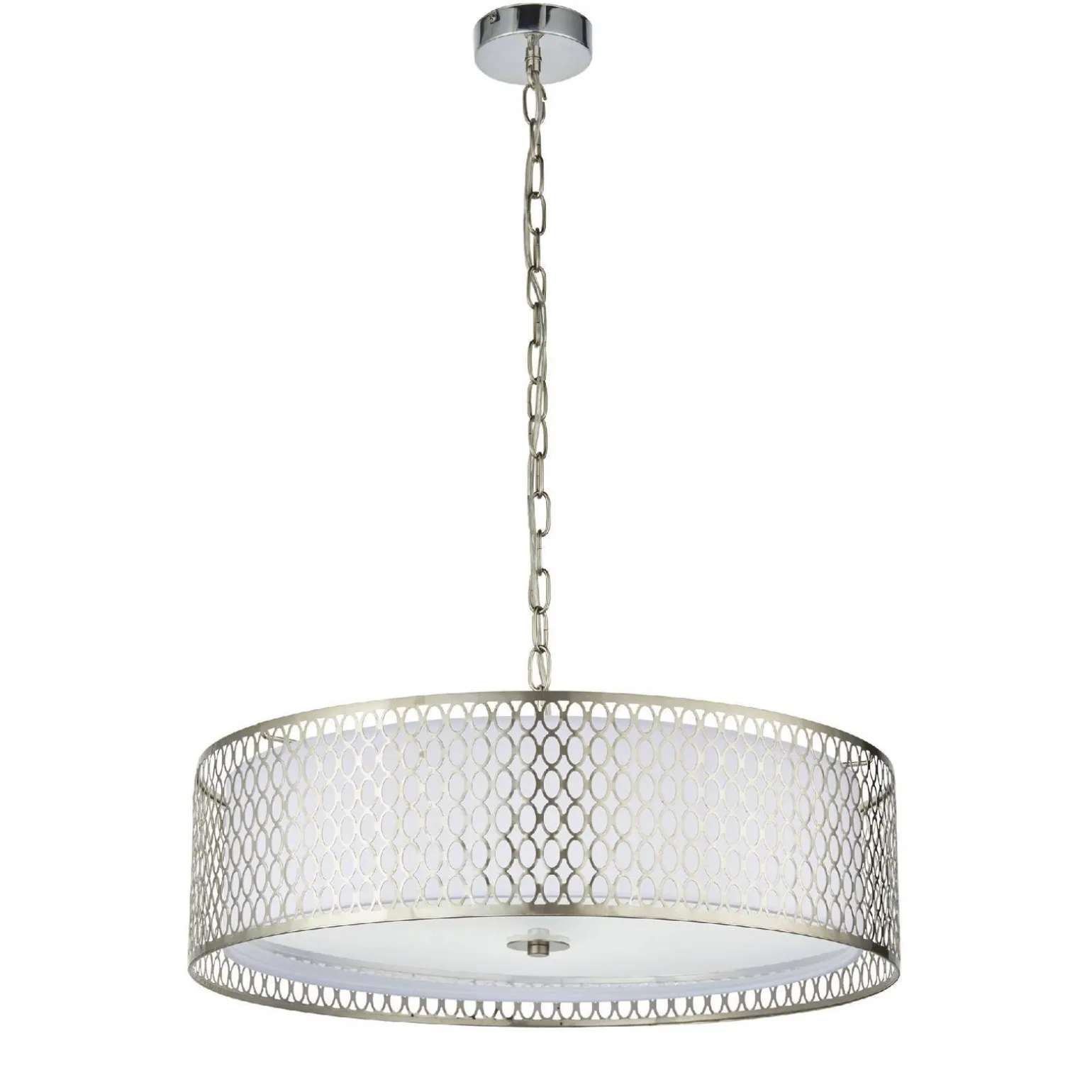 Lampa Wisząca Cordero (81969) od marki Endon to idealne połączenie elegancji i nowoczesności, które z powodzeniem wpisuje się w różnorodne aranżacje wnętrz. Jej niklowe wykończenie sprawia, że doskonale komponuje się zarówno w klasycznych, jak i bardziej współczesnych przestrzeniach. Dodatkowo, talerz wykonany z satynowego niklu w połączeniu z białą tkaniną i matowym szkłem, tworzy subtelny, a zarazem wyrafinowany design, który przyciąga wzrok i wprowadza do wnętrza przyjemny nastrój.