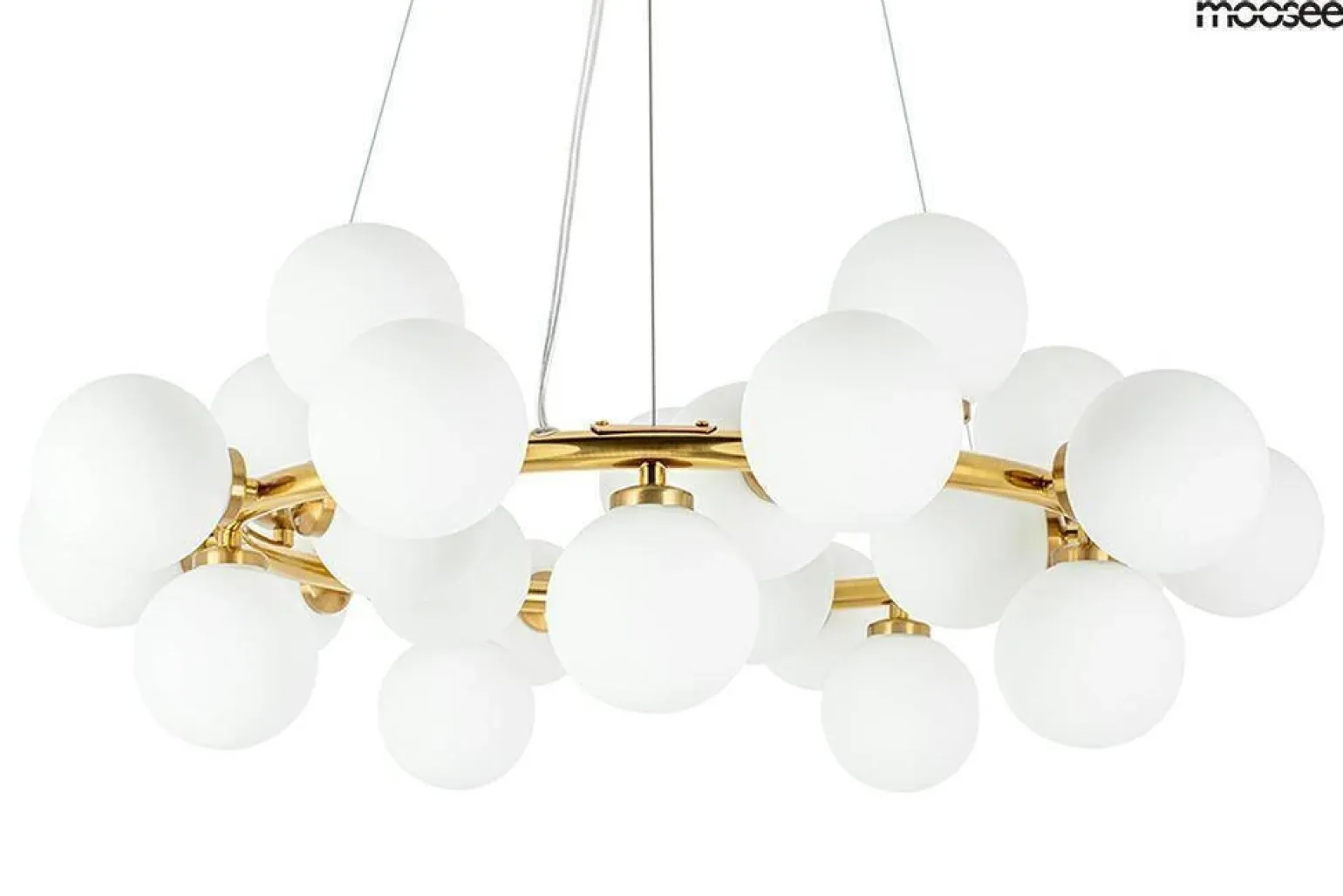 Lampa wisząca COSMO 72 złota (MSE010100223) od marki Moosee to doskonały wybór dla osób poszukujących eleganckiego oraz designerskiego oświetlenia do swojego wnętrza. Jej unikatowy design sprawi, że stanie się ona nie tylko źródłem światła, ale także niezwykłą dekoracją, która wprowadzi do pomieszczenia atmosferę luksusu. Dzięki zastosowaniu wysokiej jakości materiałów, takich jak szkło i metal, lampa ta wpisuje się w najnowsze trendy aranżacyjne, idealnie pasując do stylów takich jak Hampton i Art Deco.