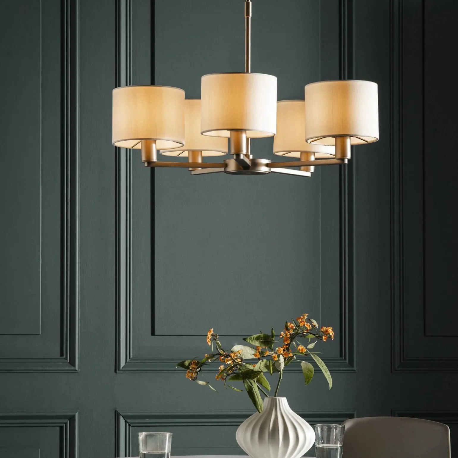 Lampa Wisząca Daley (60257) marki Endon to idealne rozwiązanie dla osób, które poszukują eleganckiego oświetlenia, które doda charakteru każdemu wnętrzu. Dzięki swojemu klasycznemu i jednocześnie nowoczesnemu stylowi, Daley doskonale wkomponuje się zarówno w aranżacjach Hampton, jak i w tradycyjnych, eleganckich przestrzeniach. Zastosowanie matowej płyty niklowej w połączeniu z białą tkaniną tworzy harmonijną całość, która przyciąga wzrok.