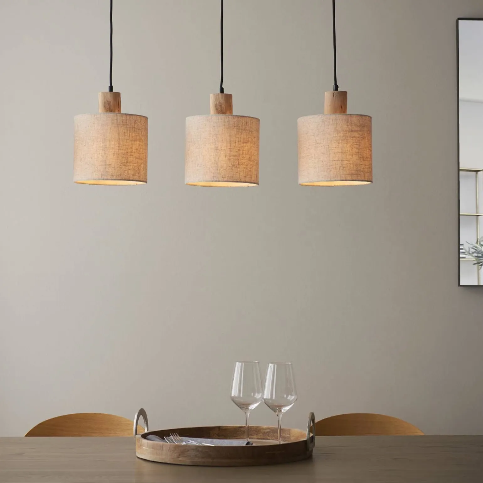 Pozwól, że zaprezentujemy Lampę Wiszącą Durban (101681) marki Endon, która doskonale wpisuje się w aktualne trendy wnętrzarskie. Stworzona z naturalnych materiałów, lampa zachwyca eleganckim wykończeniem z naturalnego drewna eukaliptusowego, naturalnego lnu oraz matowej czerni. Jej minimalistyczny styl idealnie komponuje się z przestrzeniami urządzone w klimacie boho oraz skandynawskim, nadając pomieszczeniom wyjątkowego charakteru.