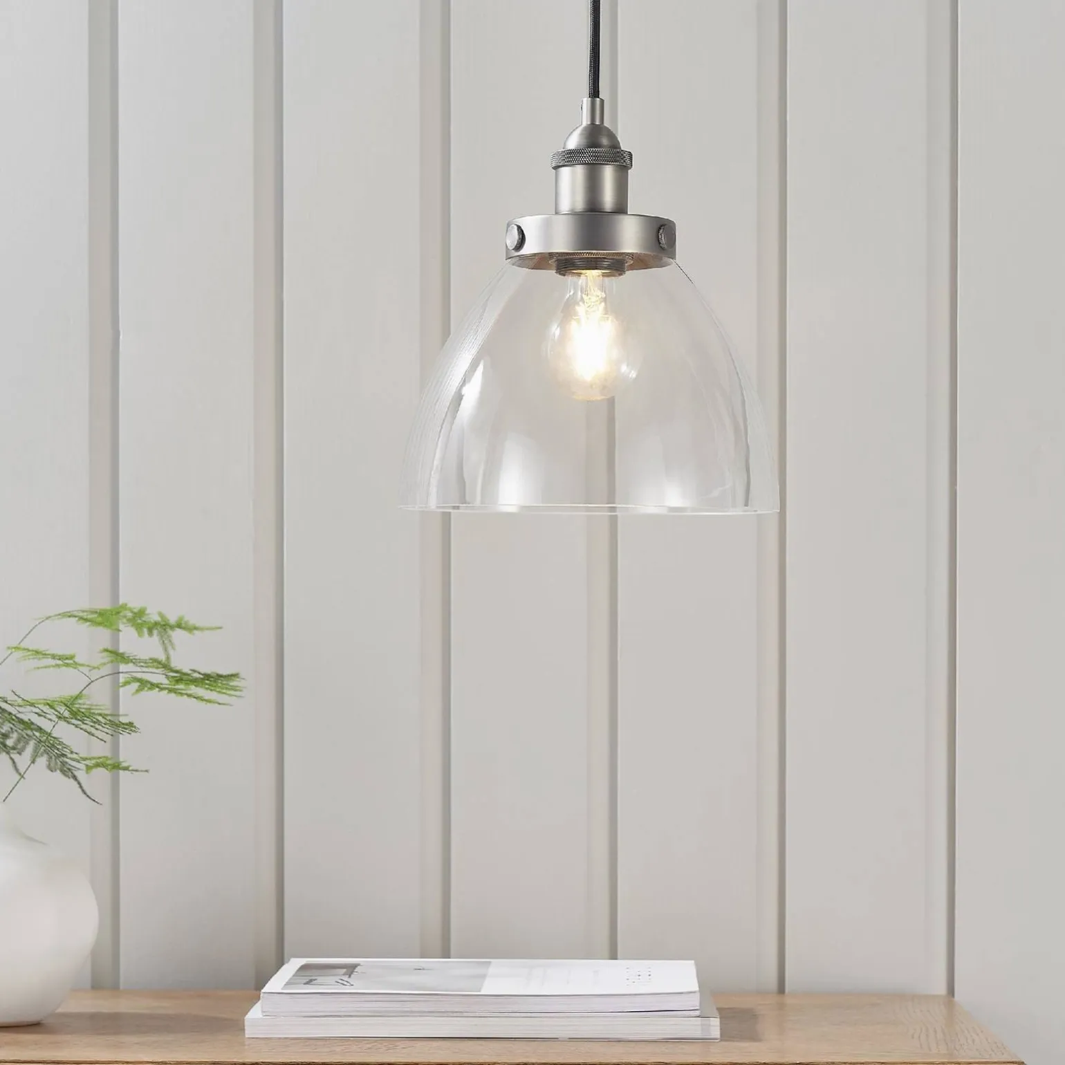 Lampa Hansen wyróżnia się wysokiej jakości wykonaniem, z wykorzystaniem szczotkowanego srebrnego lakieru oraz przezroczystego szkła. Taki wybór materiałów sprawia, że oprawa jest nie tylko estetyczna, ale również trwała. Dodatkowo, lampa została wyposażona w trzonek E27, co daje możliwość zastosowania żarówki o mocy maksymalnej 40 W. Ze względu na stopień ochrony IP20, idealnie nadaje się do stosowania w pomieszczeniach wewnętrznych, zapewniając jednocześnie efektywne oświetlenie i przyjemną atmosferę.