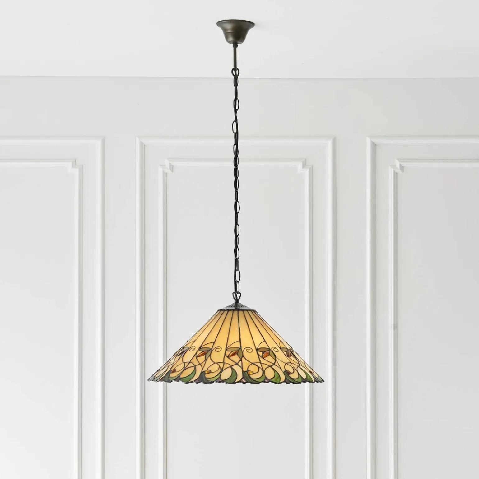 Wybierając lampę wiszącą Jamelia, inwestujesz w produkt renomowanej marki Tiffany, która od lat kojarzy się z luksusem i wyjątkowym designem. Każdy detal lampy został starannie przemyślany, co sprawia, że jest to nie tylko element dekoracyjny, ale także funkcjonalny. Dodatkowo, brak źródła światła w komplecie pozwala na dowolny wybór stylu żarówek, co wprowadza jeszcze więcej możliwości personalizacji.