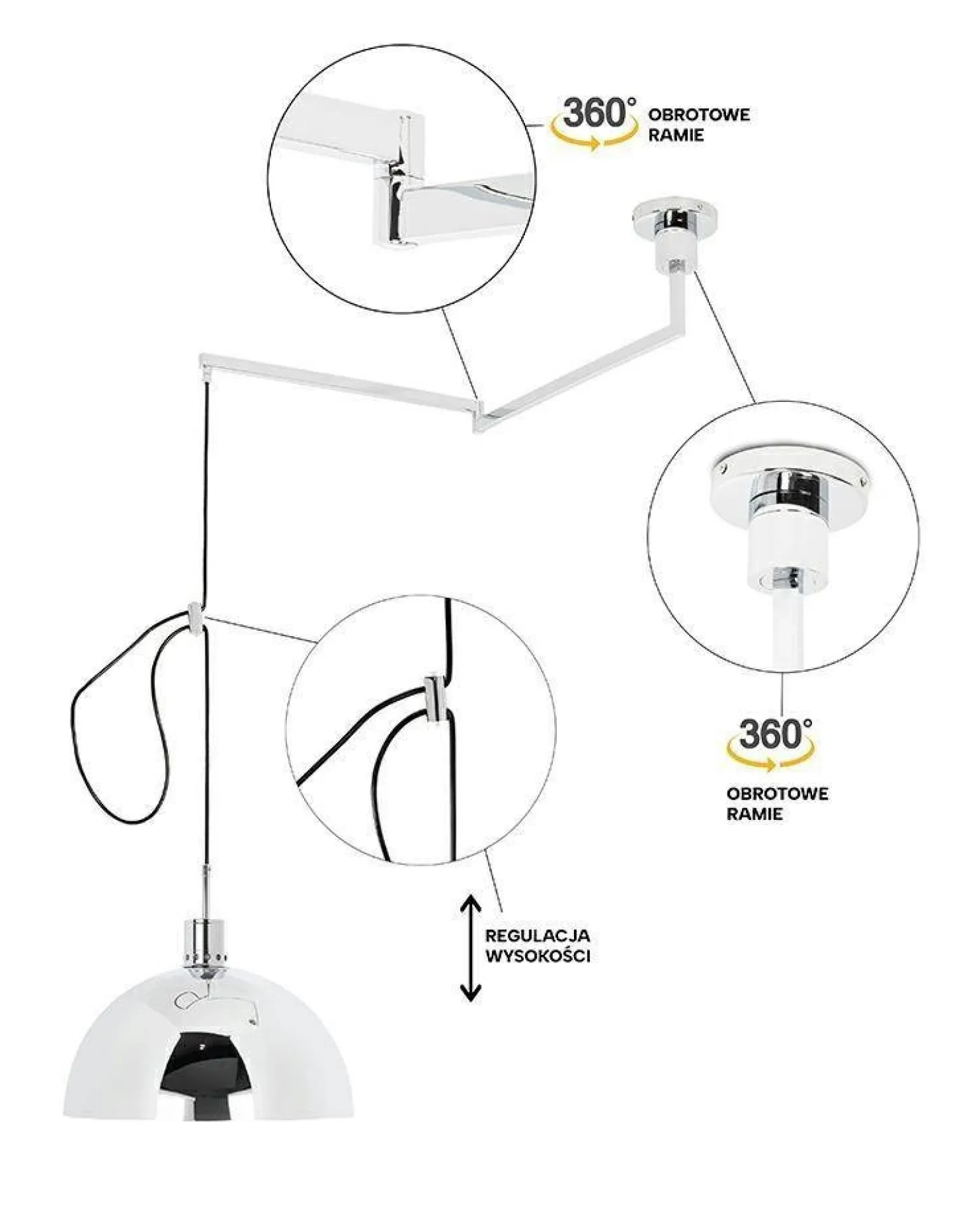 Lampa wisząca ROTA 360 srebrny chrom (JD8998) od marki King Home to doskonały wybór dla wszystkich, którzy poszukują eleganckiego i nowoczesnego oświetlenia do swojego wnętrza. Dzięki wyjątkowemu designowi, lampa doskonale wpisuje się w najnowsze trendy aranżacyjne, wprowadzając do pomieszczeń atmosferę nowoczesności oraz stylu. Jej srebrny chromowy kolor sprawia, że jest nie tylko źródłem światła, ale również efektowną dekoracją.