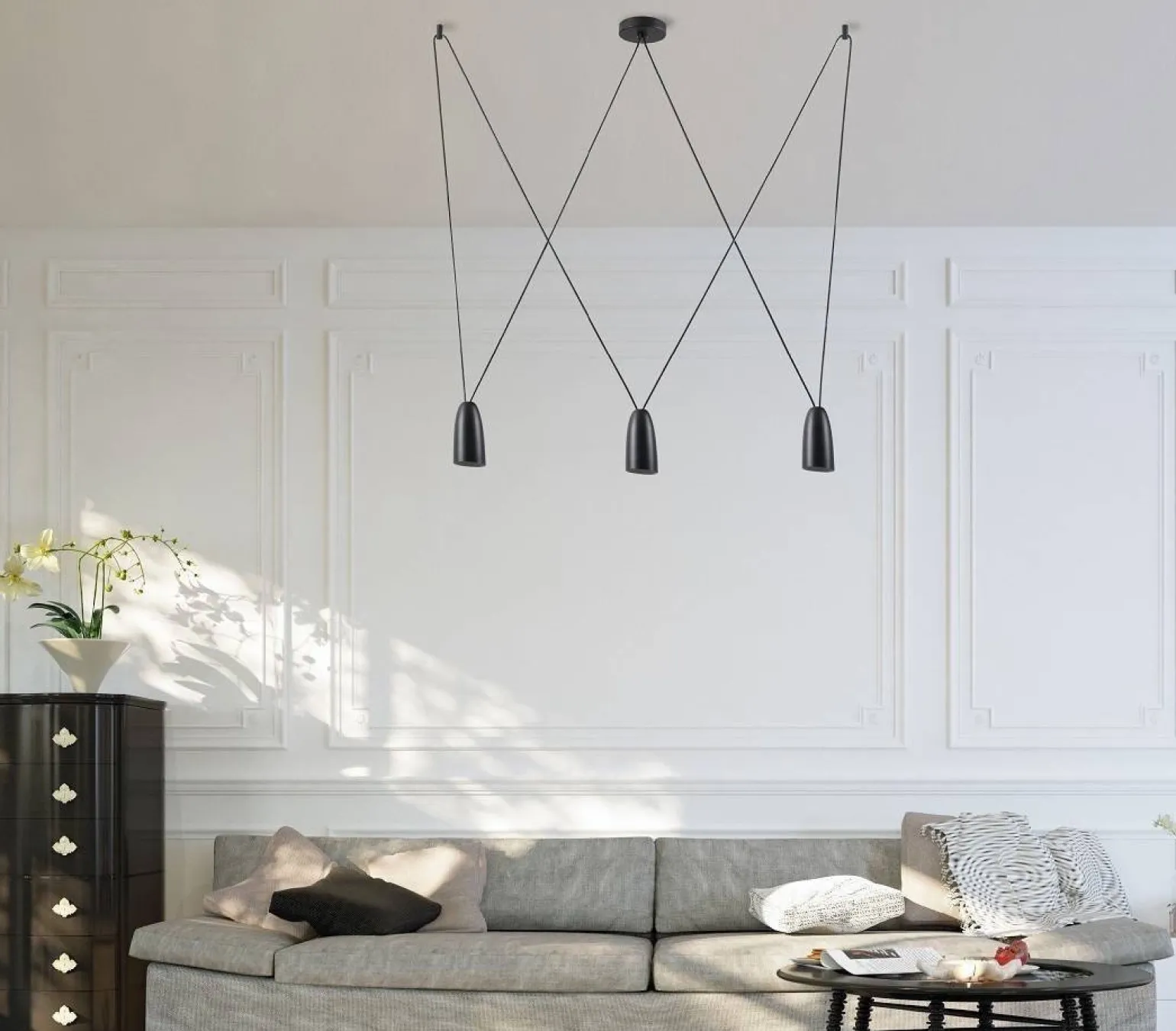 Lampa wisząca SISTEMA (P0399) od marki MAXlight to doskonały wybór dla osób, które pragną wprowadzić do swojego wnętrza nutę industrialnego stylu. Ta designerska lampa wisząca charakteryzuje się nowoczesnym i eleganckim wyglądem, co sprawia, że idealnie wpisuje się w trendy dotyczące lamp wiszących loftowych. Jej czarna, metalowa konstrukcja nadaje jej wyjątkowego charakteru, a jednocześnie sprawia, że jest ona niezwykle funkcjonalna. Dzięki wykorzystaniu trzech źródeł światła lampa wypełni każdy kąt pomieszczenia przyjemnym i ciepłym blaskiem.