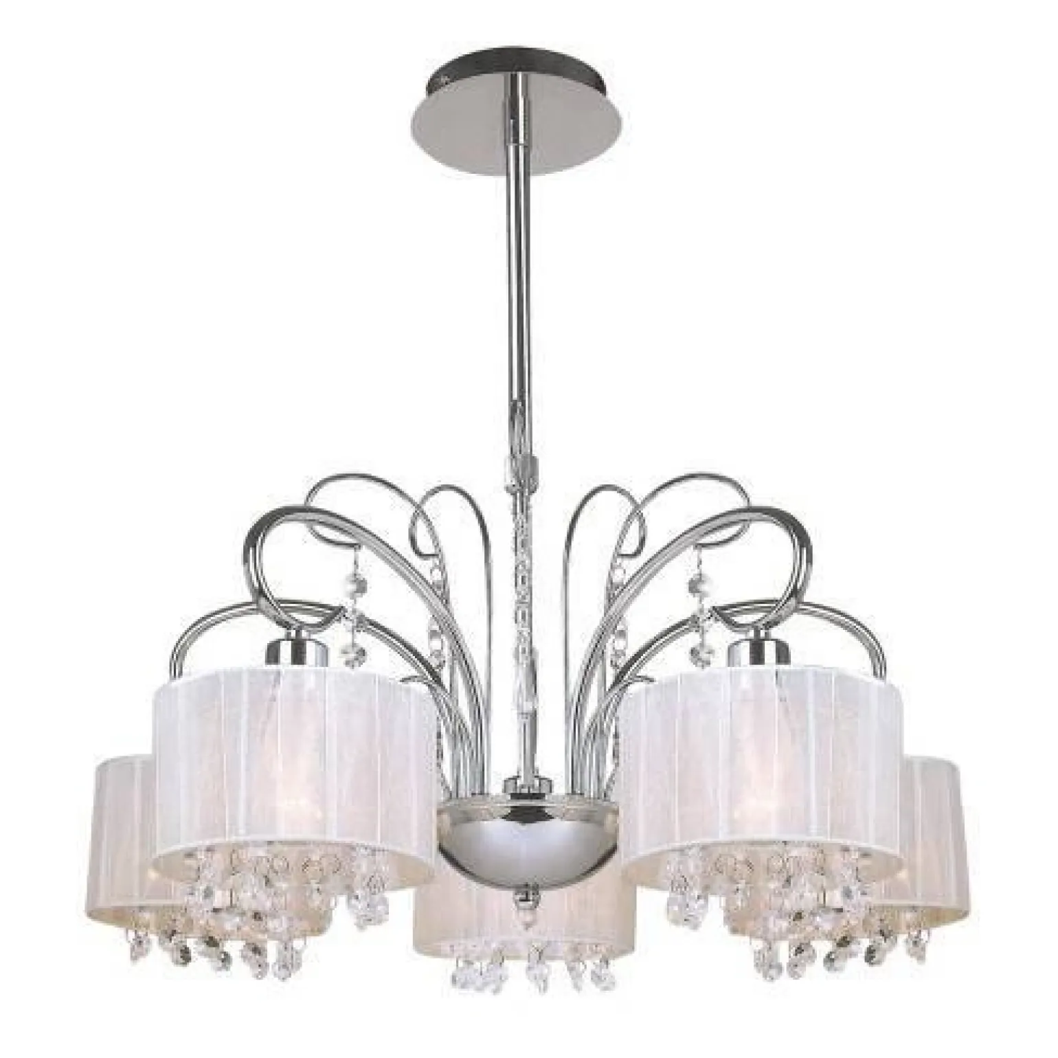 Lampa wisząca Span kol. biały (MDM1583/5 WH) marki ITALUX to niezwykłe połączenie elegancji i nowoczesności, które doskonale sprawdzi się w każdym wnętrzu. Ten żyrandol zachwyca swoją estetyką oraz dbałością o szczegóły, co czyni go idealnym wyborem do salonu, jadalni, sypialni czy biura. Szlachetne materiały, z których został wykonany, takie jak stop metali, kryształ oraz tkanina, w połączeniu z chromowanym wykończeniem nadają mu luksusowy charakter, który doskonale wpasuje się w styl glamour.