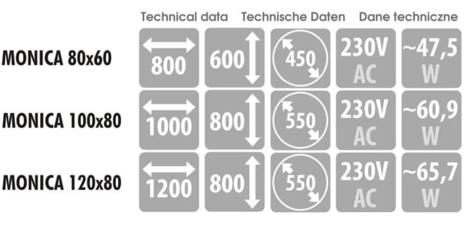 Innowacyjne rozwiązania zastosowane w lustro MONICA to nie tylko jego zewnętrzny urok, ale także wydajność energetyczna. Wyposażone w zintegrowany LED, lustro emituje neutralne światło, które doskonale oświetli Twoje wnętrza. Z napięciem 230V, lustro MONICA jest nie tylko przyjazne dla środowiska, ale także zapewnia długowieczność użytkowania. To idealny wybór dla osób, które zwracają uwagę na jakość oraz efektywność energetyczną.
