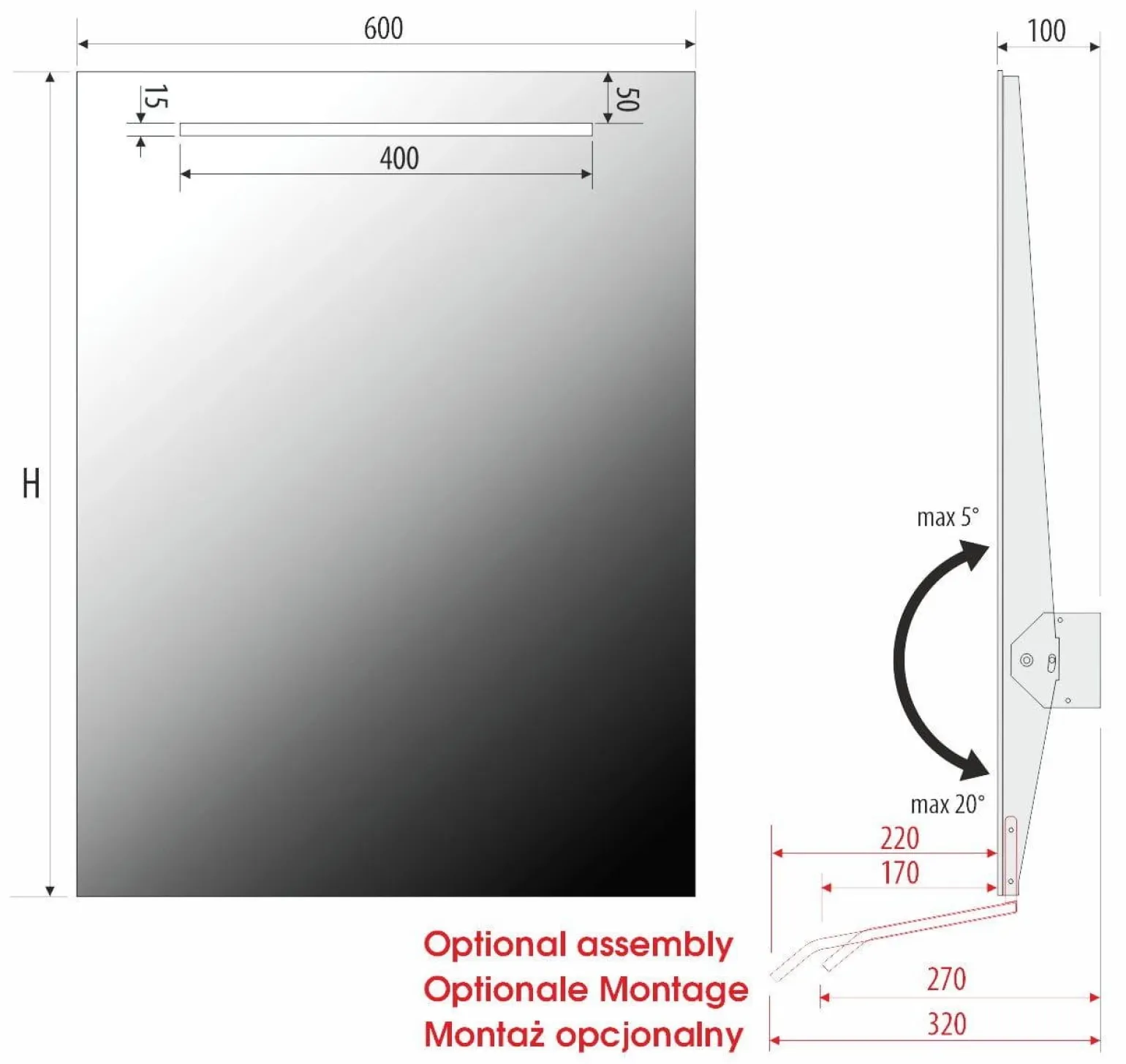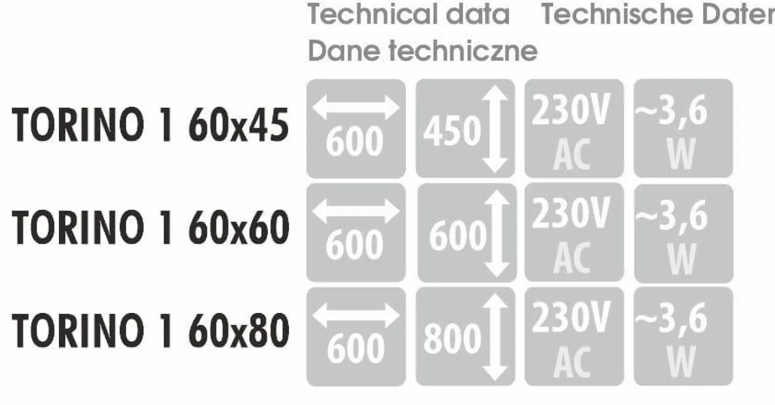 Bezpieczeństwo użytkowania lustra TORINO 1 zostało zapewnione dzięki zastosowaniu wysokiej jakości materiałów. Wysokiej klasy szkło FLOAT jest niezwykle trwałe i odporne na uszkodzenia. Dodatkowo, lustro charakteryzuje się stopniem ochrony IP20, co oznacza, że jest odpowiednie do stosowania w suchych pomieszczeniach. Dzięki temu możesz mieć pewność, że produkt spełni Twoje oczekiwania pod względem jakości i bezpieczeństwa.