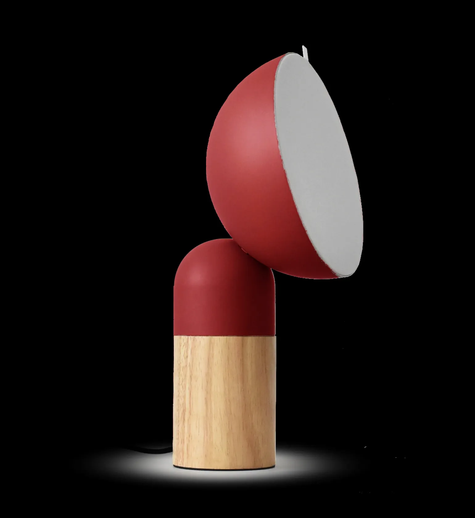 Lampa została wykonana z wysokiej jakości metalu w połączeniu z tekstylno-dyfuzyjnym materiałem, który łagodnie rozprasza światło, tworząc przyjemną aurę. Jej unikalne połączenie czerwonego koloru z elementami drewnianymi nadaje produktowi nowoczesny charakter, idealnie wpisujący się w aktualne trendy wnętrzarskie. Funkcjonalny przewód tekstylny w kolorze czarnym dodaje całości elegancji i estetyki, jednocześnie zapewniając wygodne użytkowanie.