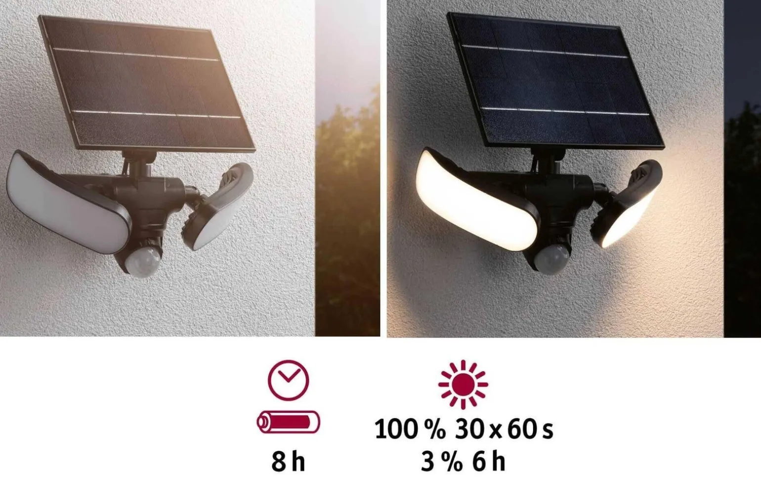 Oprawa elewacyjna SONLIG LED 2X9W solar PIR to idealne rozwiązanie dla tych, którzy szukają funkcjonalnych i nowoczesnych kinkietów zewnętrznych. Dzięki zastosowaniu technologii LED o mocy 2 x 9W, lampa dostarcza imponującą jasność na poziomie 2 x 1100 lumenów, co sprawia, że niemożliwe stanie się popełnienie błędu przy wyborze kinkietów na elewację do swojego domu. Z ciepłą temperaturą barwy światła 3000K, atmosfera wokół Twojej elewacji stworzy przytulny klimat.