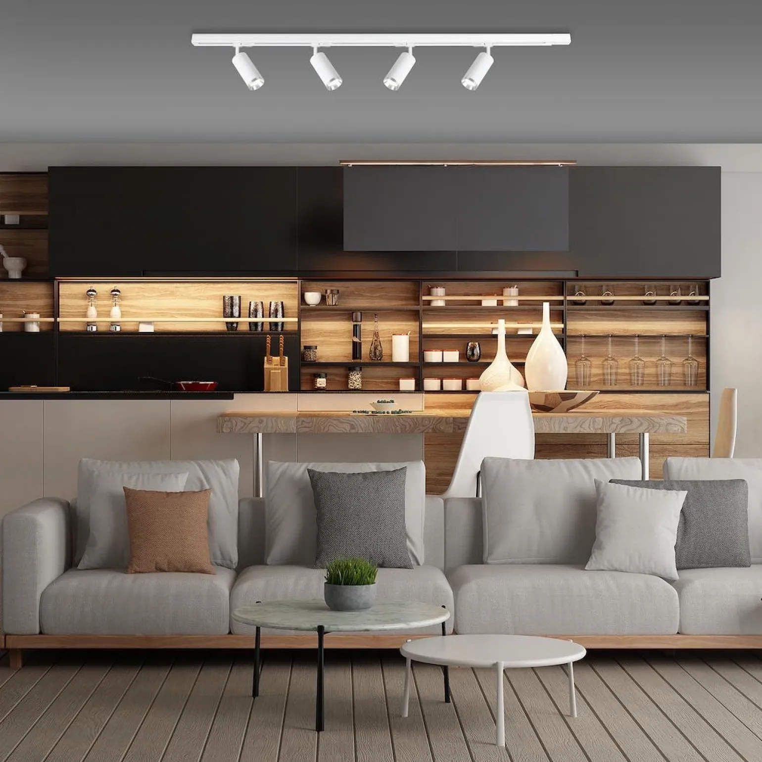 Prostokątna forma oprawy Mica Track w kolorze białym z chromowanymi akcentami stwarza niepowtarzalny klimat, a jednocześnie współczesny wygląd. Dzięki zastosowaniu systemu szynowego, oświetlenie można łatwo dostosować do indywidualnych potrzeb i układu pomieszczenia. Niezależnie od tego, czy zamontujesz ją w kuchni, czy w salonie, uzyskasz odpowiednie i przyjemne oświetlenie, które podkreśli charakter wnętrza.