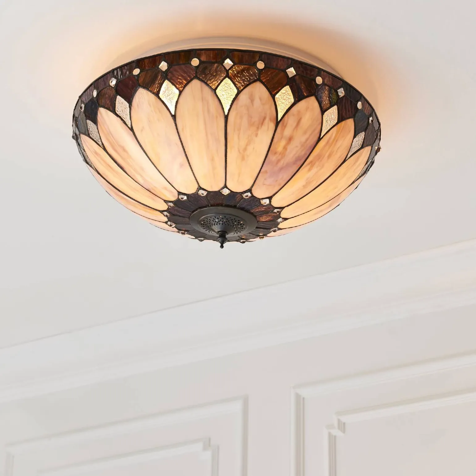 Plafon Brooklyn (63973) marki Tiffany to doskonały wybór dla osób poszukujących eleganckiego i stylowego oświetlenia do swojego wnętrza. Wykonany z wysokiej jakości materiałów, takich jak stal i szkło, plafon ten nie tylko zachwyca swoim wyglądem, ale także zapewnia trwałość i niezawodność. Jego wyjątkowy brązowy kolor wkomponuje się w różnorodne aranżacje, wprowadzając do pomieszczenia ciepło i przytulność.