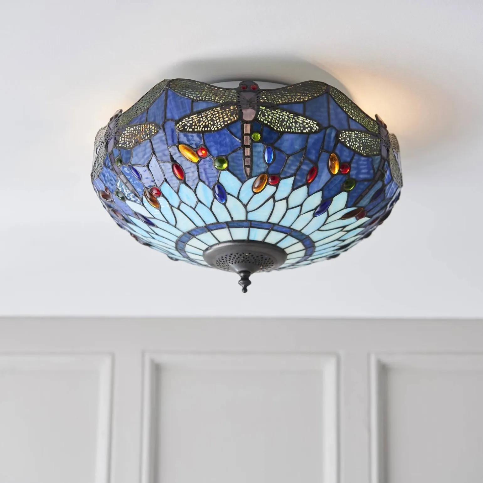 Plafon Dragonfly blue od renomowanej marki Tiffany to idealne połączenie elegancji i funkcjonalności, które doskonale wpisuje się w nowoczesne i klasyczne aranżacje wnętrz. Wyposażony w dwa źródła światła, plafon ten staje się nie tylko źródłem oświetlenia, ale także wyjątkową ozdobą, która nadaje atmosfery każdemu pomieszczeniu. Niezależnie od tego, czy planujesz zastosować go w salonie, sypialni czy jadalni, plafon Tiffany Dragonfly blue z pewnością przyciągnie wzrok i zachwyci gości.
