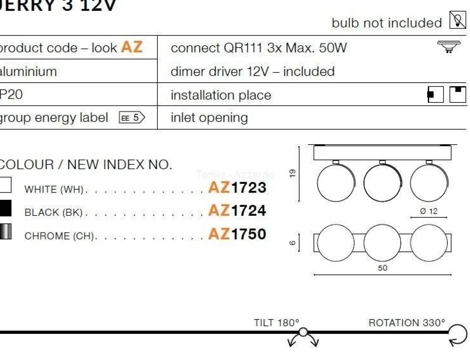 Lampa sufitowa Azzardo Plafon JERRY 3 12V black (AZ1724) to doskonałe rozwiązanie dla osób ceniących sobie nowoczesny design oraz funkcjonalność. Wykonana z aluminium i metalu, charakteryzuje się eleganckim czarnym kolorem, który doskonale wpasuje się w różnorodne aranżacje wnętrz. Przeznaczona do różnych pomieszczeń, takich jak salon, sypialnia, kuchnia, jadalnia, korytarz, biuro, czy loft, stanie się stylish dodatkiem każdego nowoczesnego wnętrza.