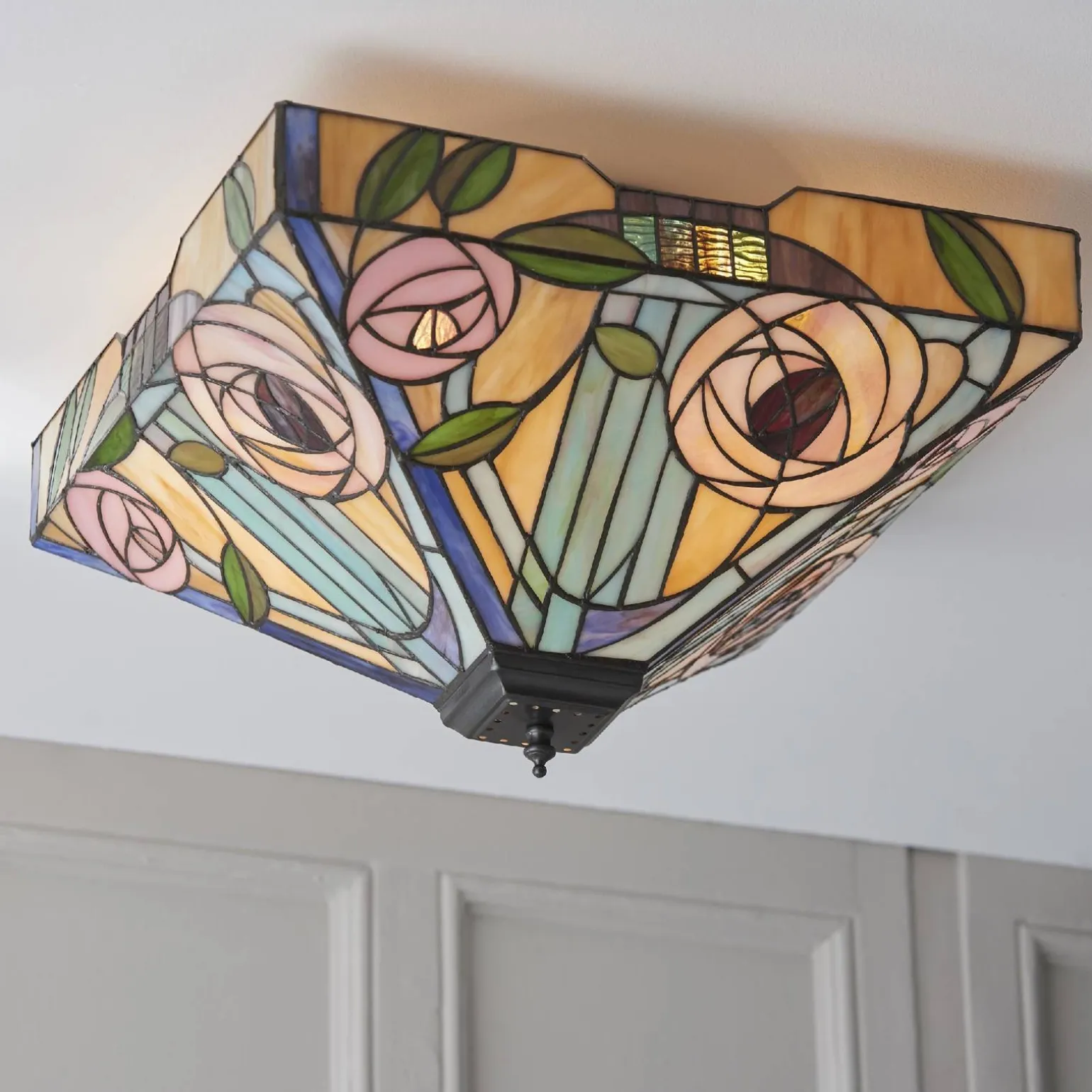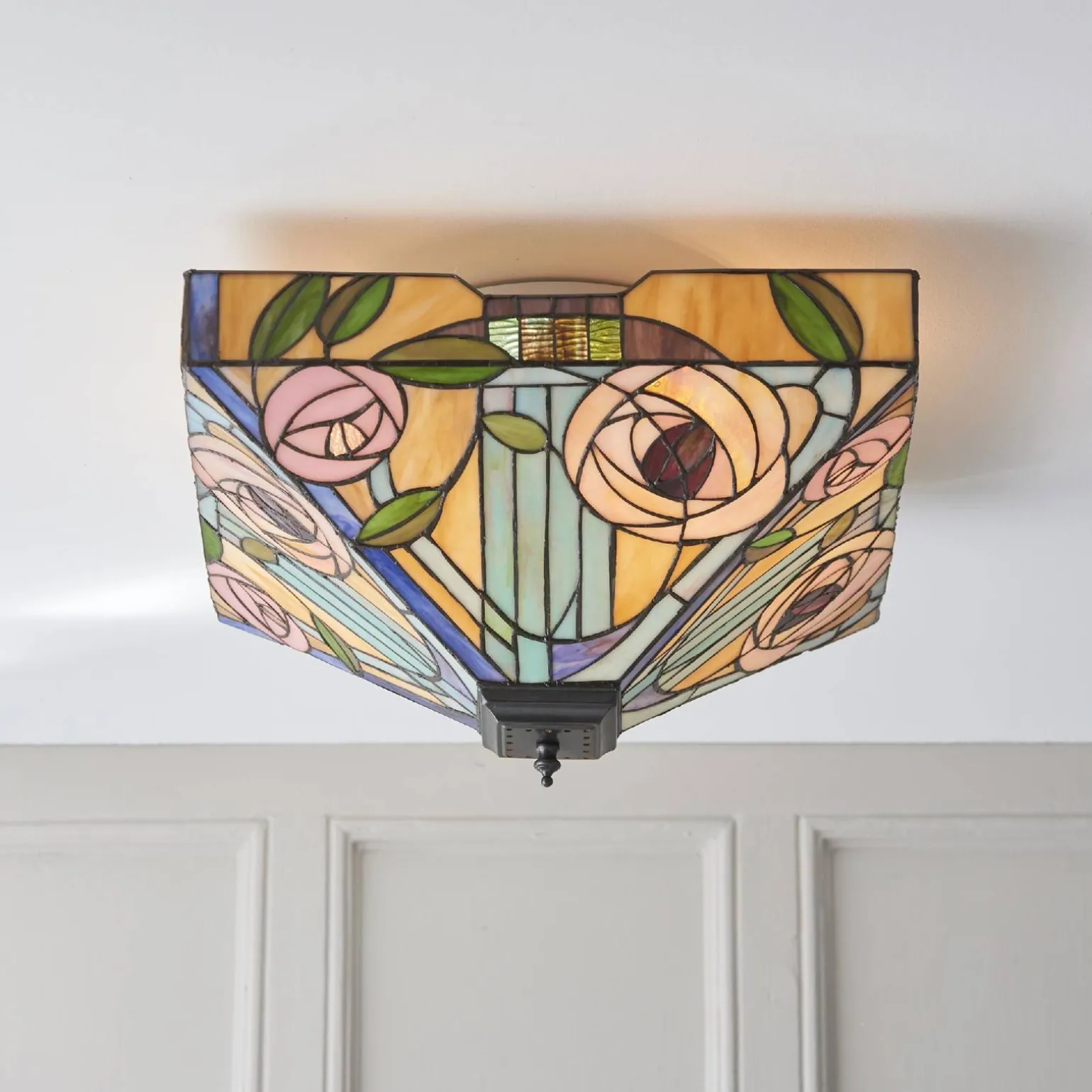 Plafon Willow (70698) od marki Tiffany to wyjątkowe połączenie stylu art deco, retro i hampton, które doda niepowtarzalnego charakteru każdego wnętrzu. Dzięki swojej eleganckiej formie oraz subtelnym detalom, plafon doskonale wpasuje się w różnorodne aranżacje, zarówno w salonie, sypialni, jak i jadalni. Wyposażony w dwa trzonki E27, zapewnia możliwość stworzenia indywidualnego oświetlenia, które podkreśli piękno Twojego wnętrza.