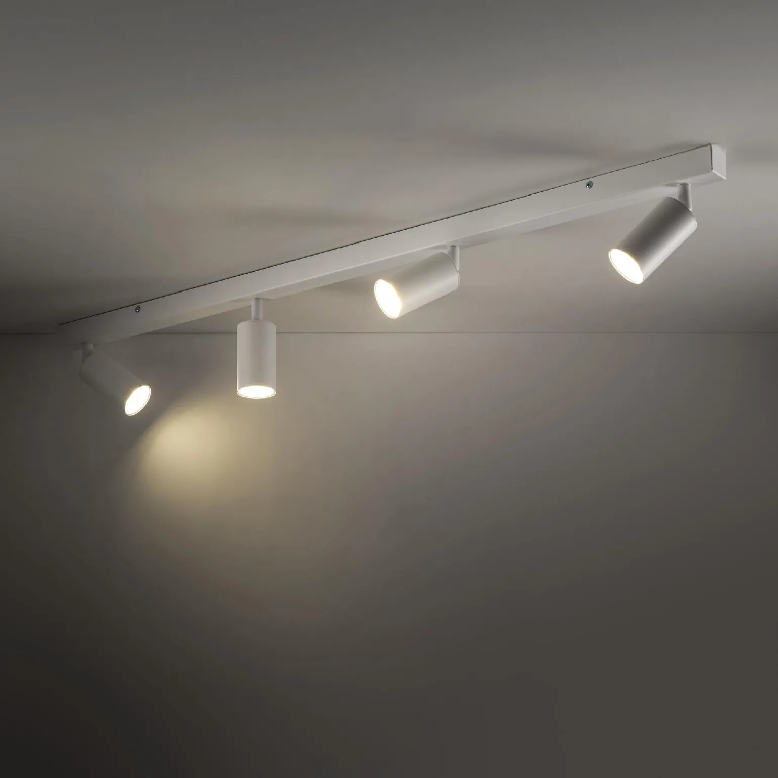 Ta lampa sufitowa oferuje możliwość zainstalowania czterech źródeł światła (trzonek GU10), co zapewnia odpowiednie oświetlenie nawet w większych przestrzeniach. Reflektory na listwie można dowolnie ustawiać, co pozwala na skierowanie światła w miejsce, gdzie jest najbardziej potrzebne. Dzięki temu lampy sufitowe do salonu z tej serii idealnie sprawdzą się zarówno podczas codziennych zajęć, jak i podczas stworzenia nastrojowego klimatu podczas spotkań z rodziną i przyjaciółmi.