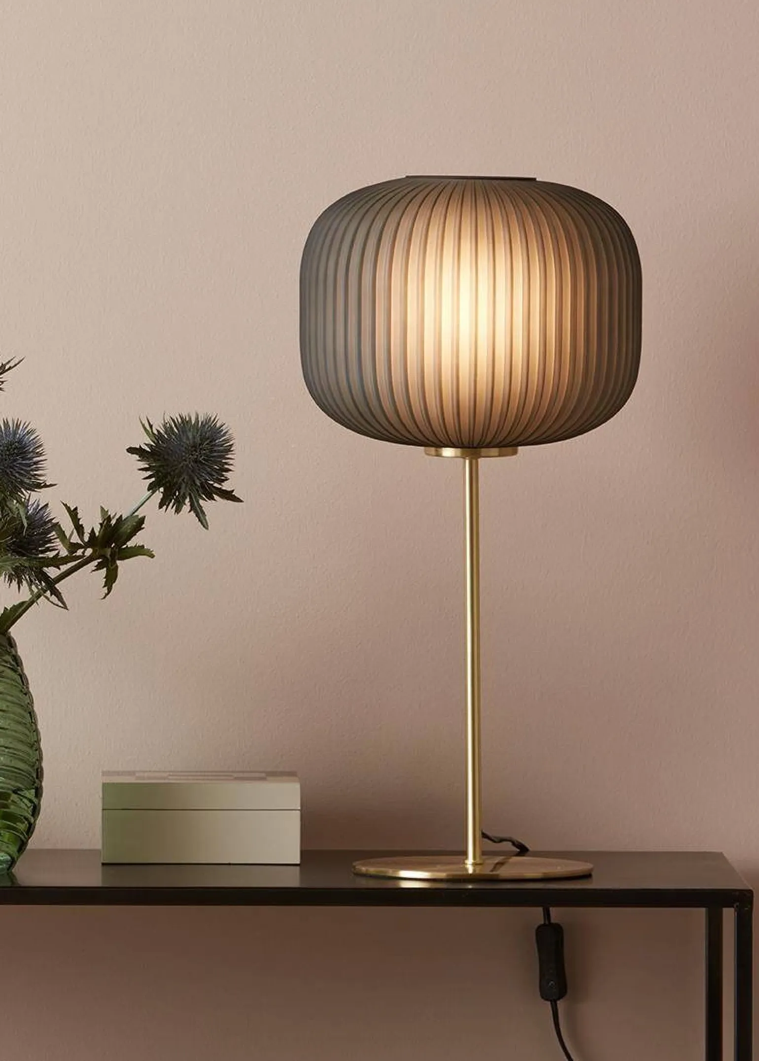 Kolor mosiądz w połączeniu z szklanym kloszem w odcieniu SMOKE tworzy harmonijną całość, która sprawdzi się zarówno w stylowych salonach, jak i na eleganckich komodach w sypialni. Dzięki prostemu, ale efektownemu designowi, SOBER Table stanie się nie tylko źródłem światła, ale również efektowną dekoracją każdego pomieszczenia.