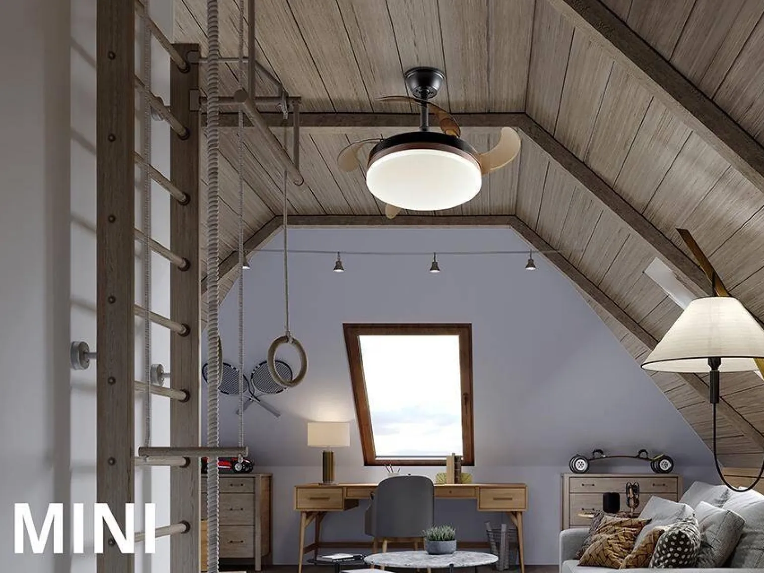 Dzięki inteligentnemu projektowi, Vento MINI może być montowana w różnych przestrzeniach wewnętrznych. Niezależnie od tego, czy to salon, sypialnia, czy biuro, ta lampa sufitowa doda uroku każdemu pomieszczeniu. Jej subtelna forma sprawia, że jest doskonałym wyborem zarówno do nowoczesnych, jak i tradycyjnych wnętrz. Funkcjonalność wentylatora idealnie współgra z designerskim wyglądem, tworząc harmonijną całość.