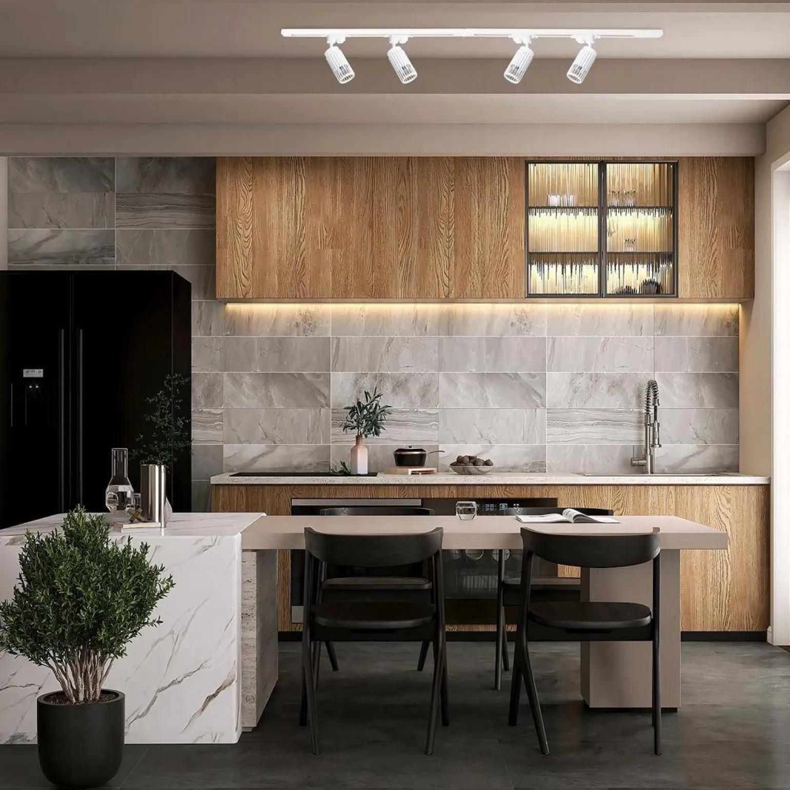 Wysoka jakość wykonania oraz nowoczesny styl VERTICAL WHITE TRACK sprawiają, że jest to oprawa stworzona dla osób, które cenią sobie elegancję oraz funkcjonalność. Idealnie sprawdzi się jako oświetlenie nad wyspę kuchenną czy stół w jadalni, tworząc odpowiednie warunki do wspólnego biesiadowania. Jej uniwersalny design pozwala na łatwe dopasowanie do różnych stylów wnętrz, od skandynawskiego po industrialny.