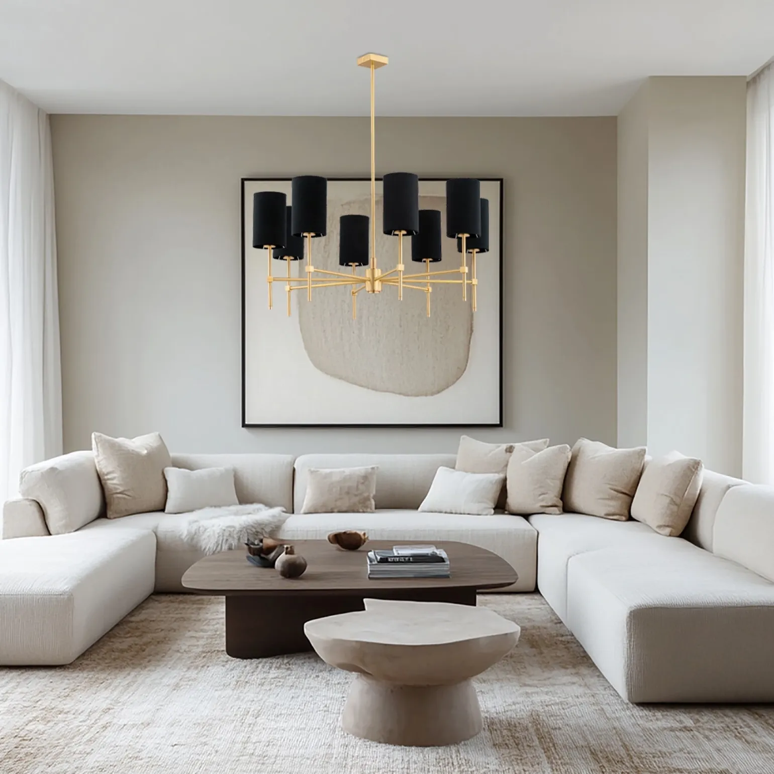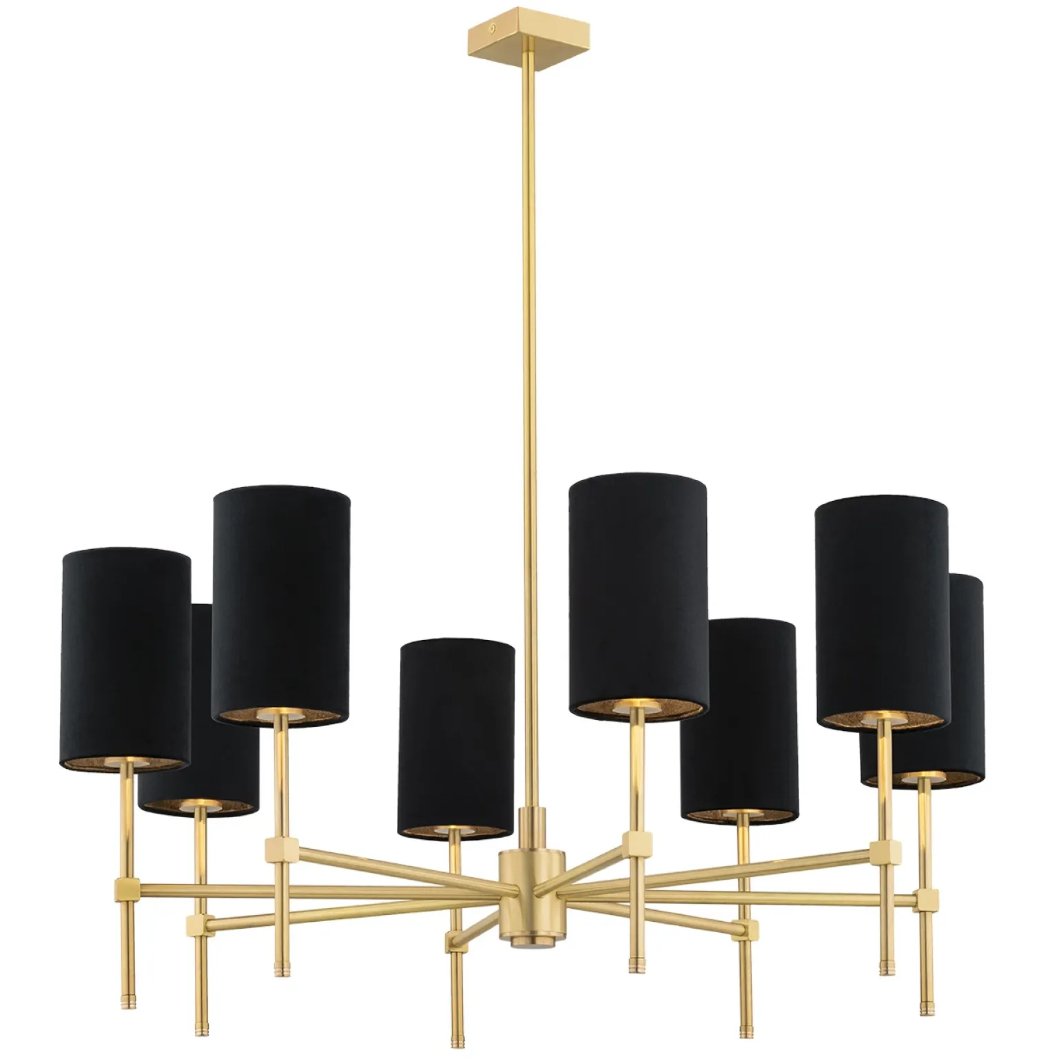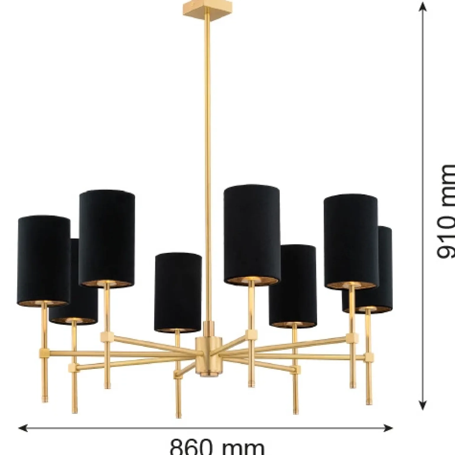 Żyrandol 8 pł. ABRUZZO (5052) – Argon to wyjątkowy element oświetlenia, który doskonale wpasuje się w każde wnętrze. Dzięki swojemu eleganckiemu designowi i zastosowaniu wysokiej jakości materiałów, takich jak mosiądz i tkanina, lampa ta emanuje niezwykłą klasą i szykiem. Jej czerń i mosiężne akcenty tworzą harmonijną całość, co sprawia, że jest to idealny wybór dla osób ceniących sobie żyrandole retro oraz żyrandole vintage. Oferowany model doskonale nadaje się do przestrzeni takich jak salon czy jadalnia.