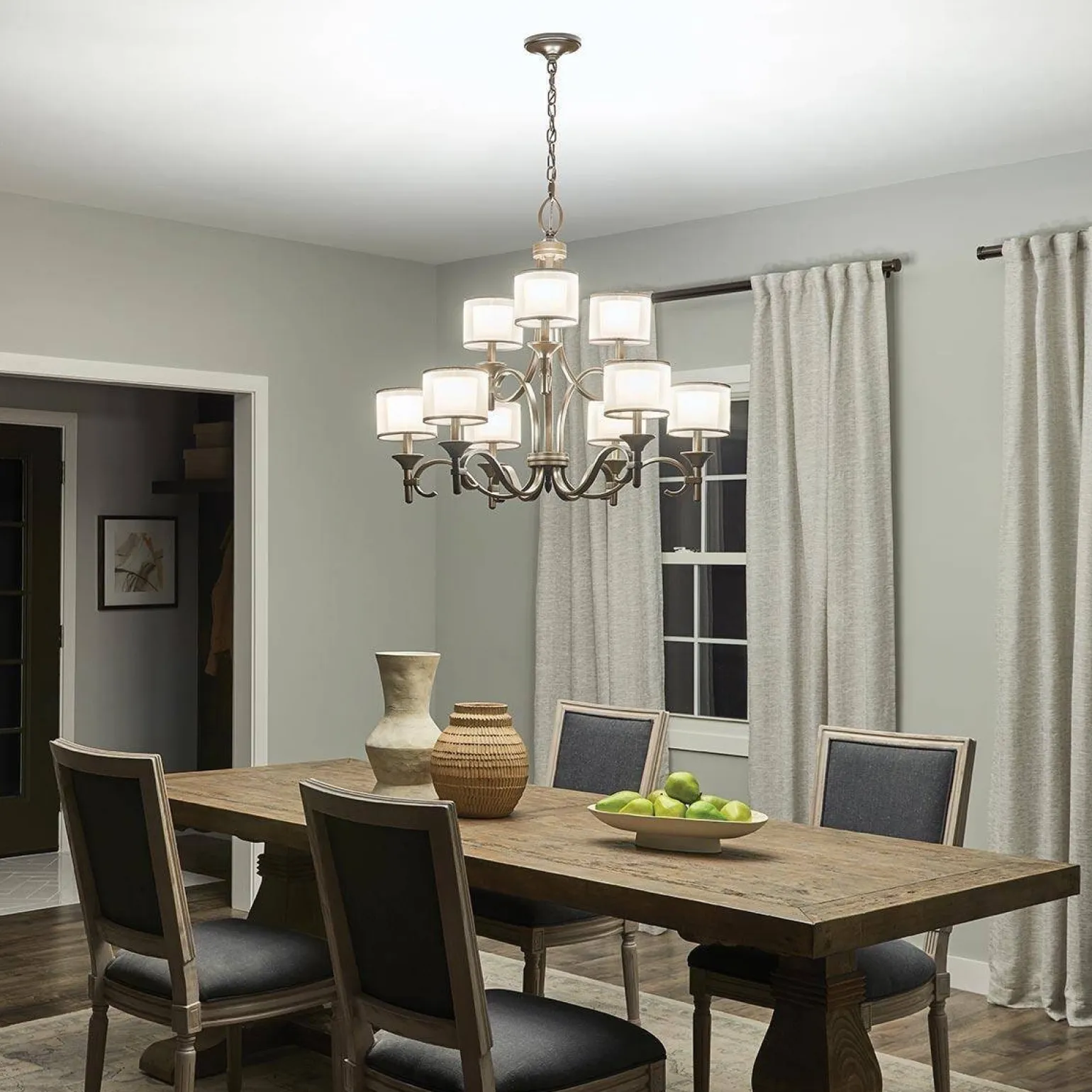 Dzięki szarej kolorystyce oraz białemu kloszowi, żyrandol Lacey staje się doskonałym dodatkiem do wnętrz urządzonych w stylu rustykalnym. Wykonany z wysokiej jakości materiałów, takich jak stal, szkło oraz tkanina, ten żyrandol sufitowy zapewnia nie tylko estetykę, ale również trwałość na lata. Dzięki zastosowanym materiałom, lampa idealnie komponuje się z różnorodnymi aranżacjami oraz stylami dekoracyjnymi, co czyni ją wszechstronnym elementem wystroju.