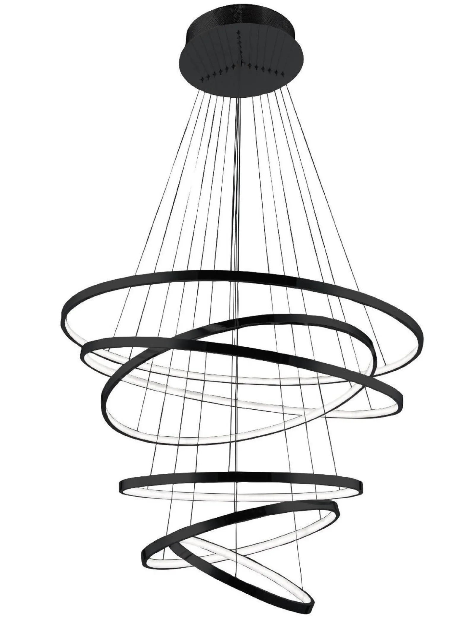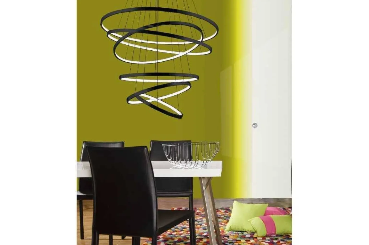 Ten designerski żyrandol wykonany jest z wysokiej jakości materiałów, takich jak aluminium oraz akryl, co zapewnia trwałość i estetyczny wygląd. Oferuje on możliwość ściemniania, dzięki czemu można dostosować intensywność światła do swoich potrzeb, tworząc zarówno intymną atmosferę podczas kolacji, jak i jasne oświetlenie do codziennych aktywności. Jego zintegrowane oświetlenie LED o maksymalnej mocy 150 W generuje imponujący strumień światła wynoszący 8400 lm, w ciepłej barwie o temperaturze 3000 K.