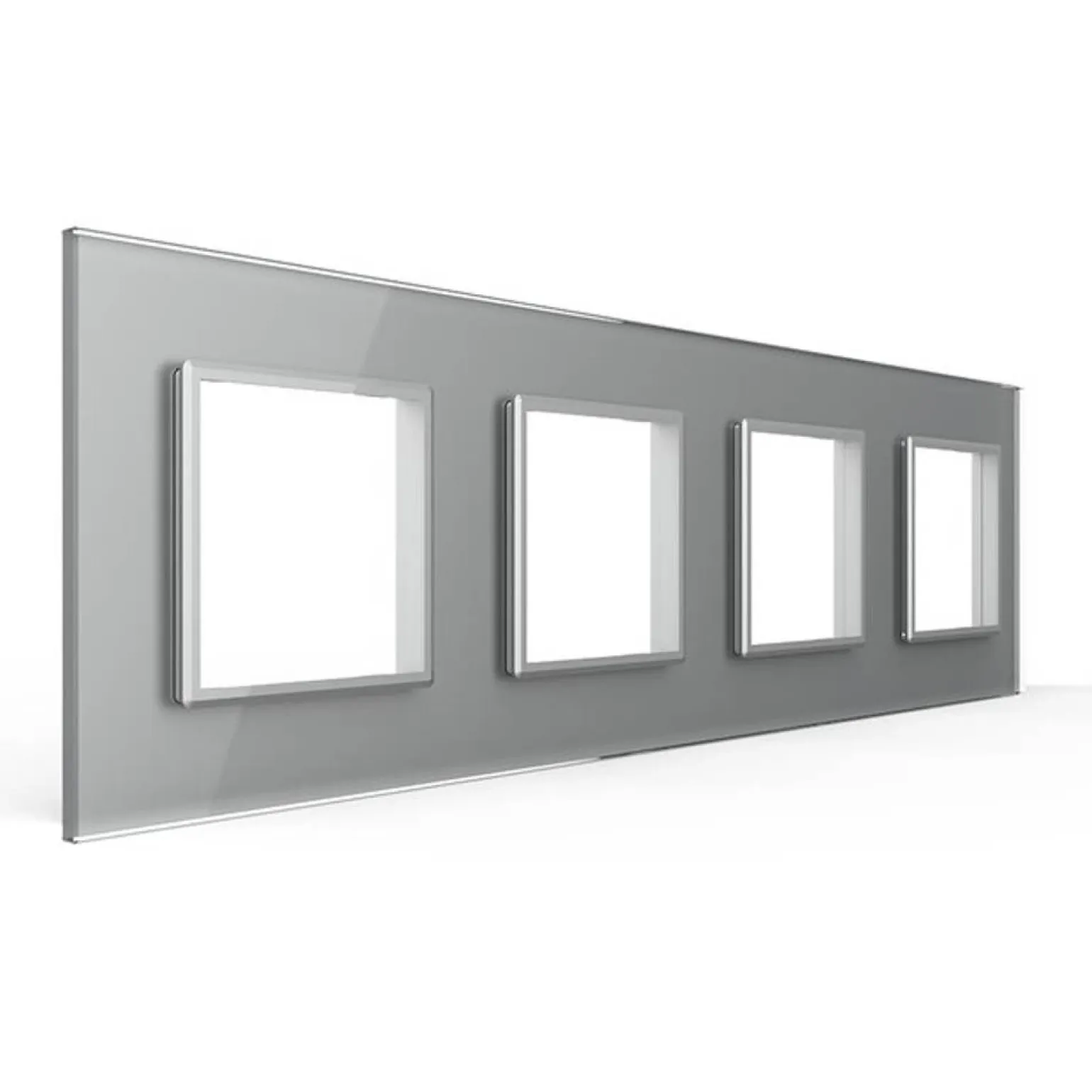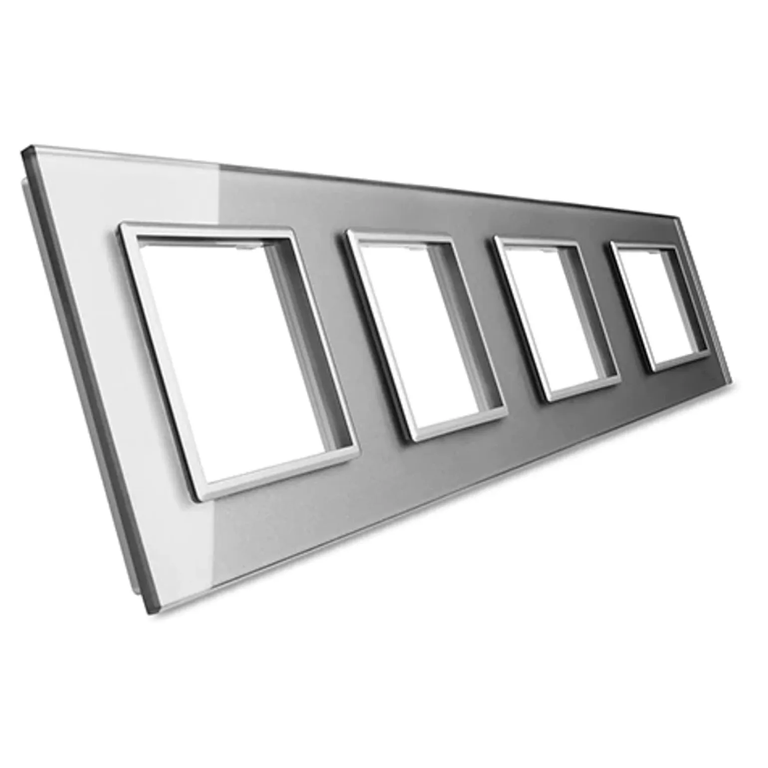 Czterokrotna srebrna ramka szklana (GPF-4-64) LIVOLO to doskonałe rozwiązanie dla osób poszukujących elegancji oraz nowoczesności w swoim domu. Wykonana z panelu ze szkła kryształowego, nie tylko pięknie się prezentuje, ale również jest łatwa w utrzymaniu czystości. Dzięki swojej srebrnej kolorystyce, ramka idealnie wpasuje się w każdy wystrój wnętrz, nadając im elegancki design. Produkt ten jest częścią bogatej oferty marki Livolo, która specjalizuje się w włącznikach, gniazdach i akcesoriach elektrycznych, w tym nowoczesnych technologiach do zarządzania oświetleniem.