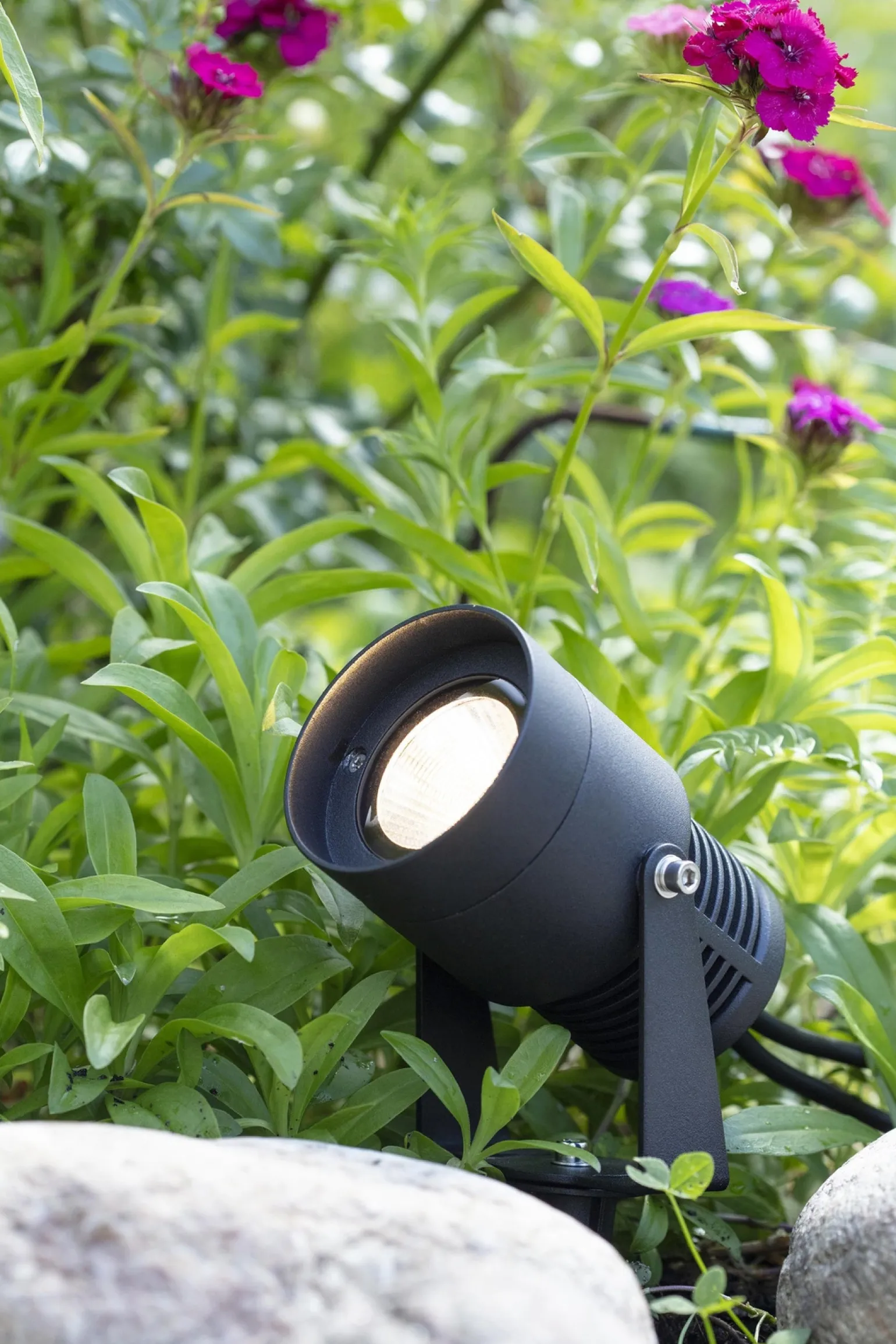Reflektor jest zabudowany w sposób, który pozwala na jego łatwe umiejscowienie w ogrodzie, dzięki czemu idealnie nadaje się do aranzacji ogrodu. Jego mobilność pozwala na swobodne dostosowanie w zależności od potrzeb oraz nastroju. Kąt świecenia wynoszący 36° sprawia, że światło jest skierowane w jedno miejsce, co pozwala na skuteczne oświetlenie wybranych elementów dekoracyjnych w ogrodzie, takich jak rośliny, rzeźby czy ścieżki.