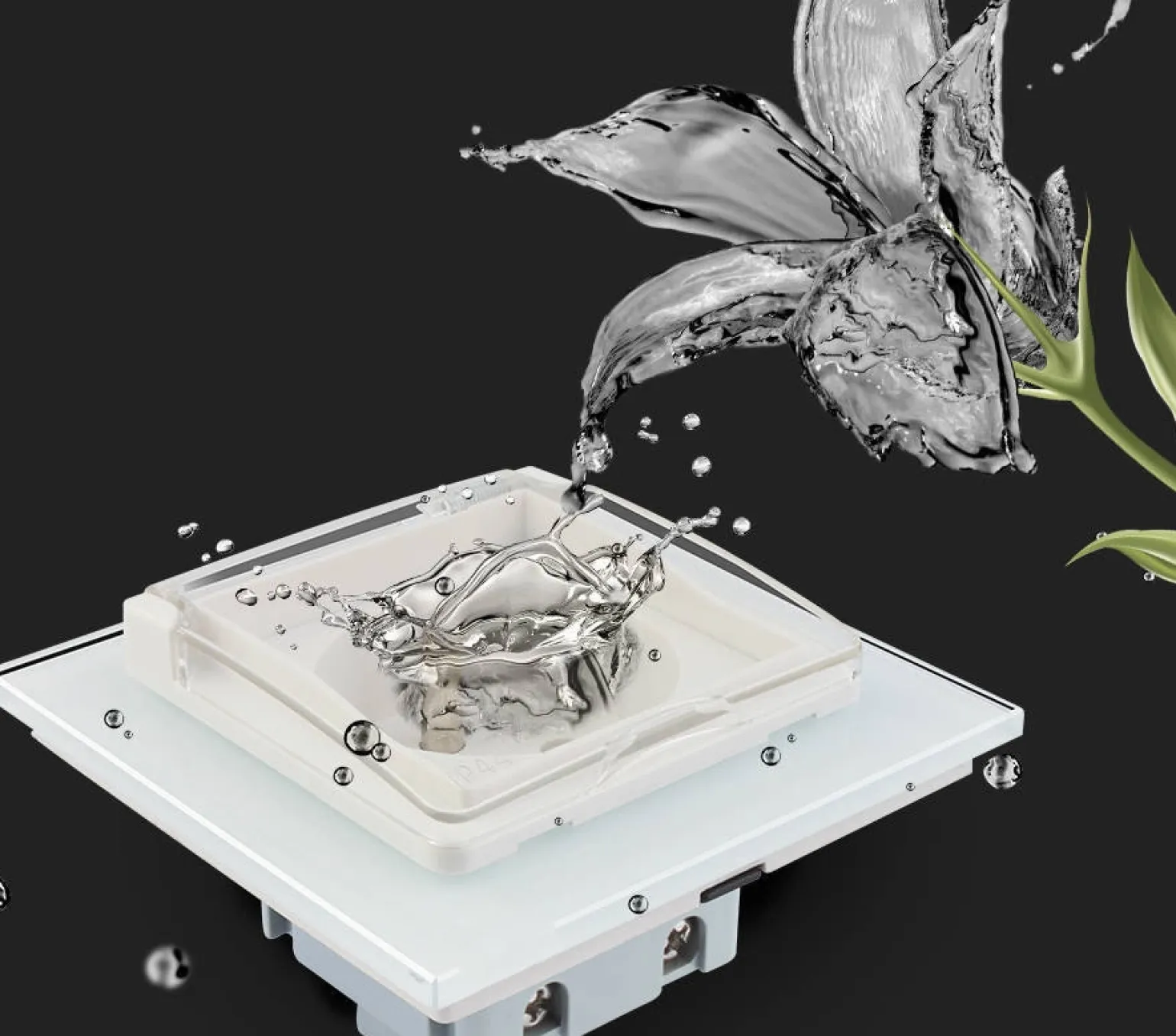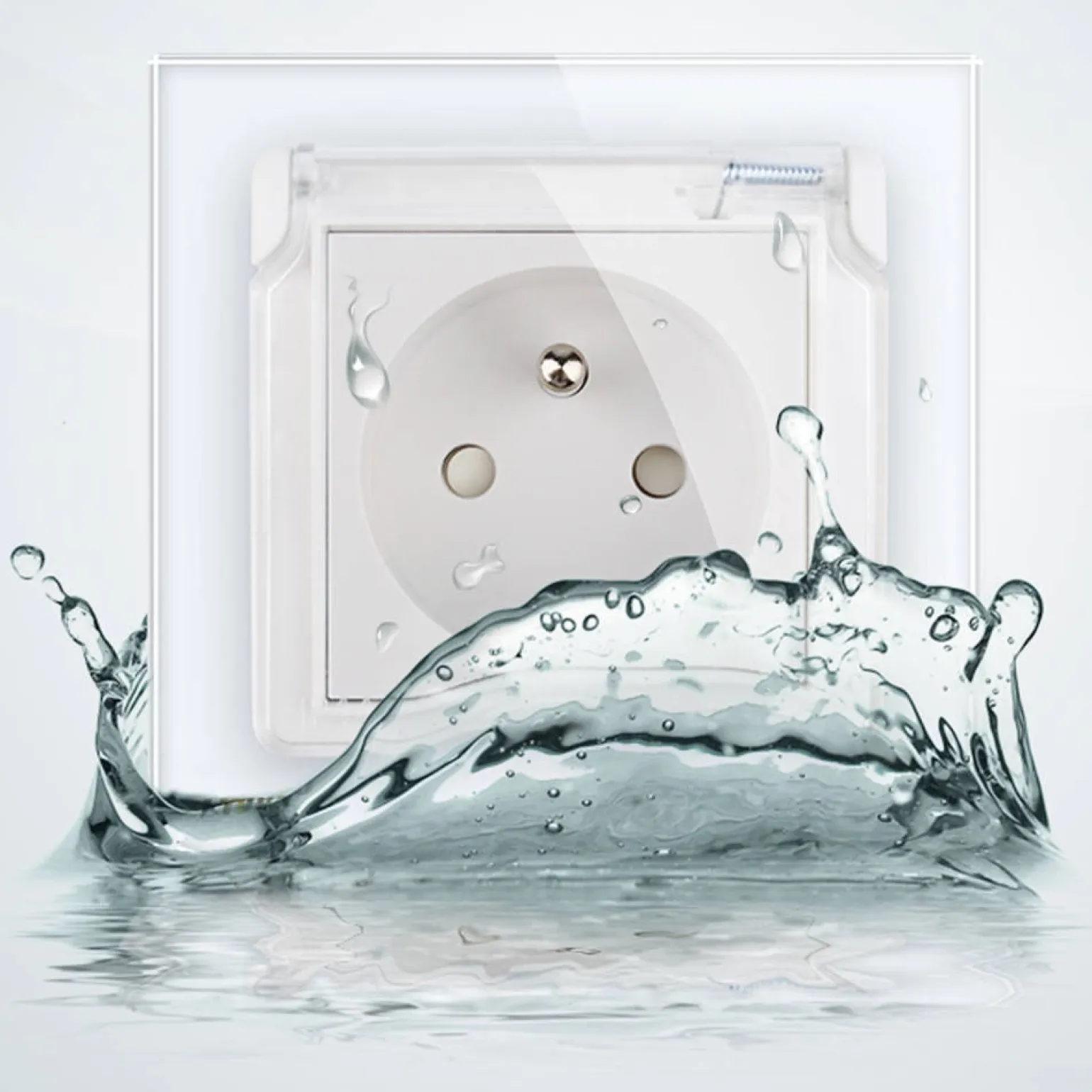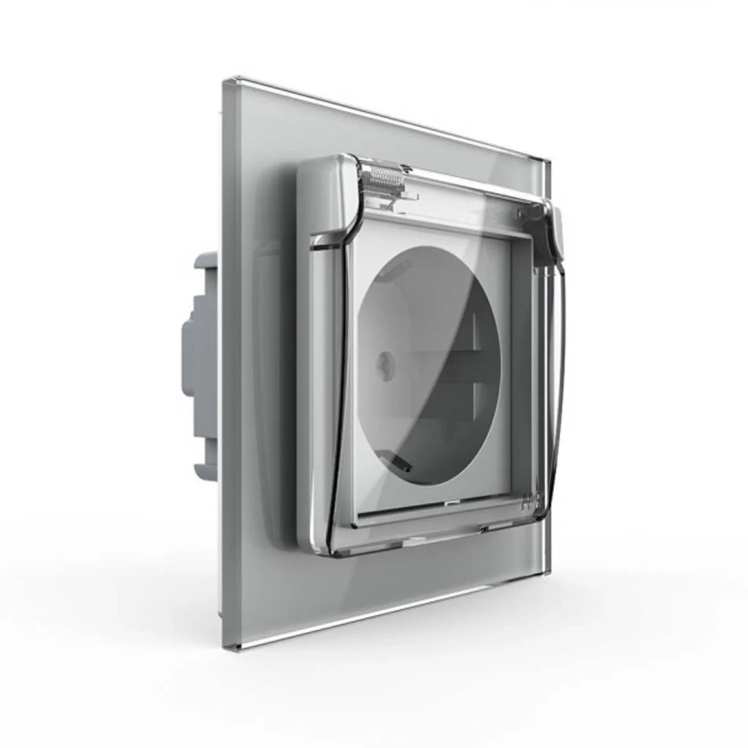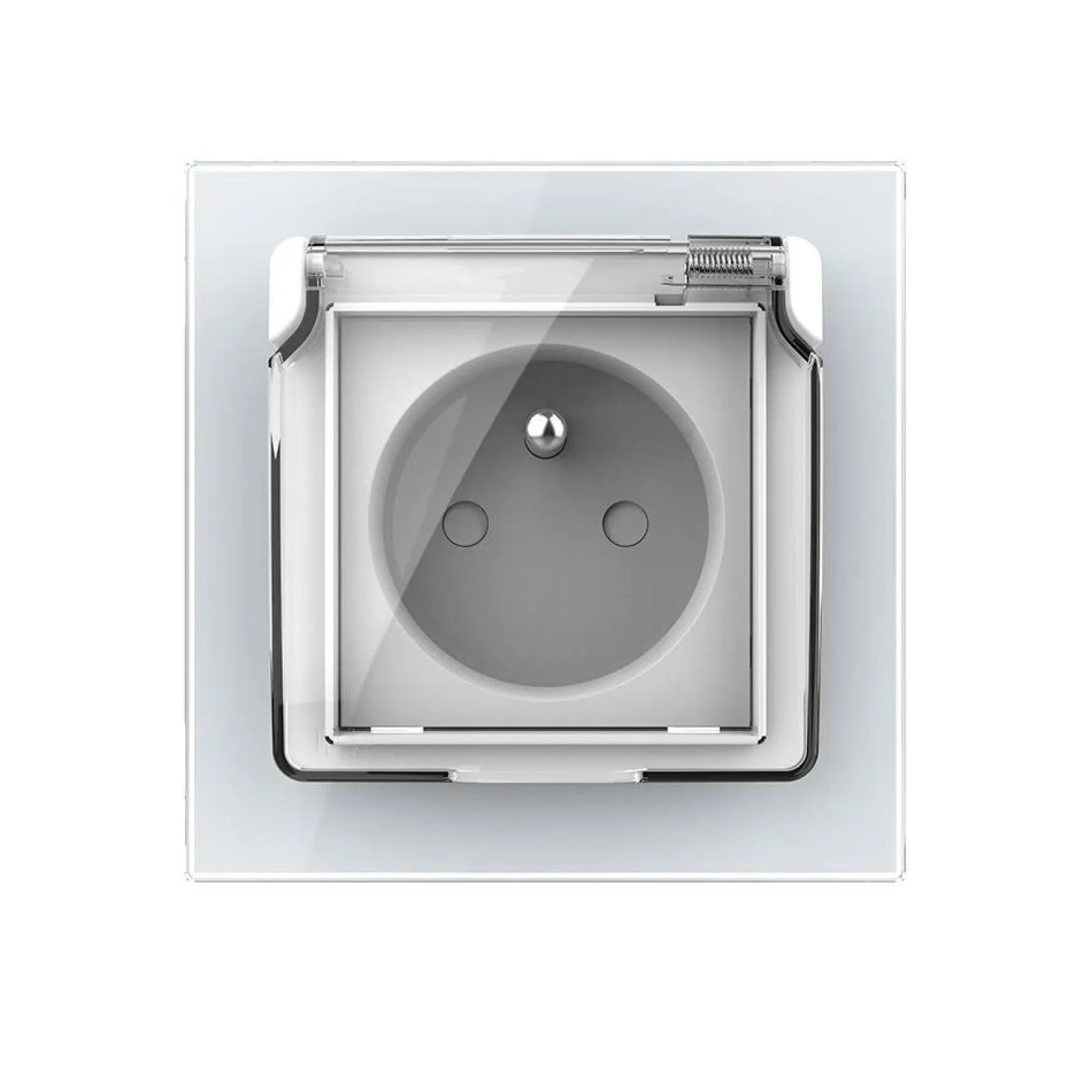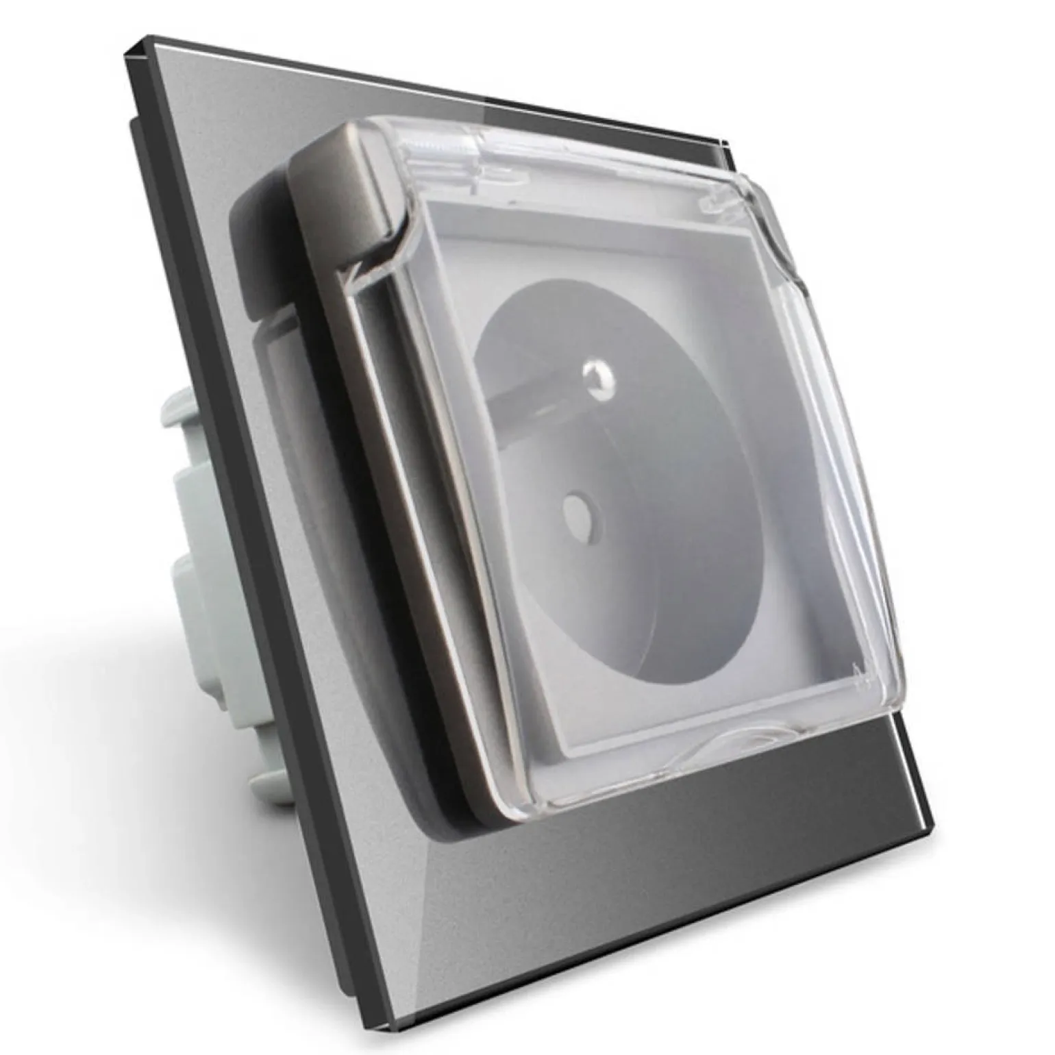 Gniazdo z bolcem 230V 16A ze srebrnym panelem szklanym i nakładką bryzgoszczelną (VL-W01FRNW-64) LIVOLO