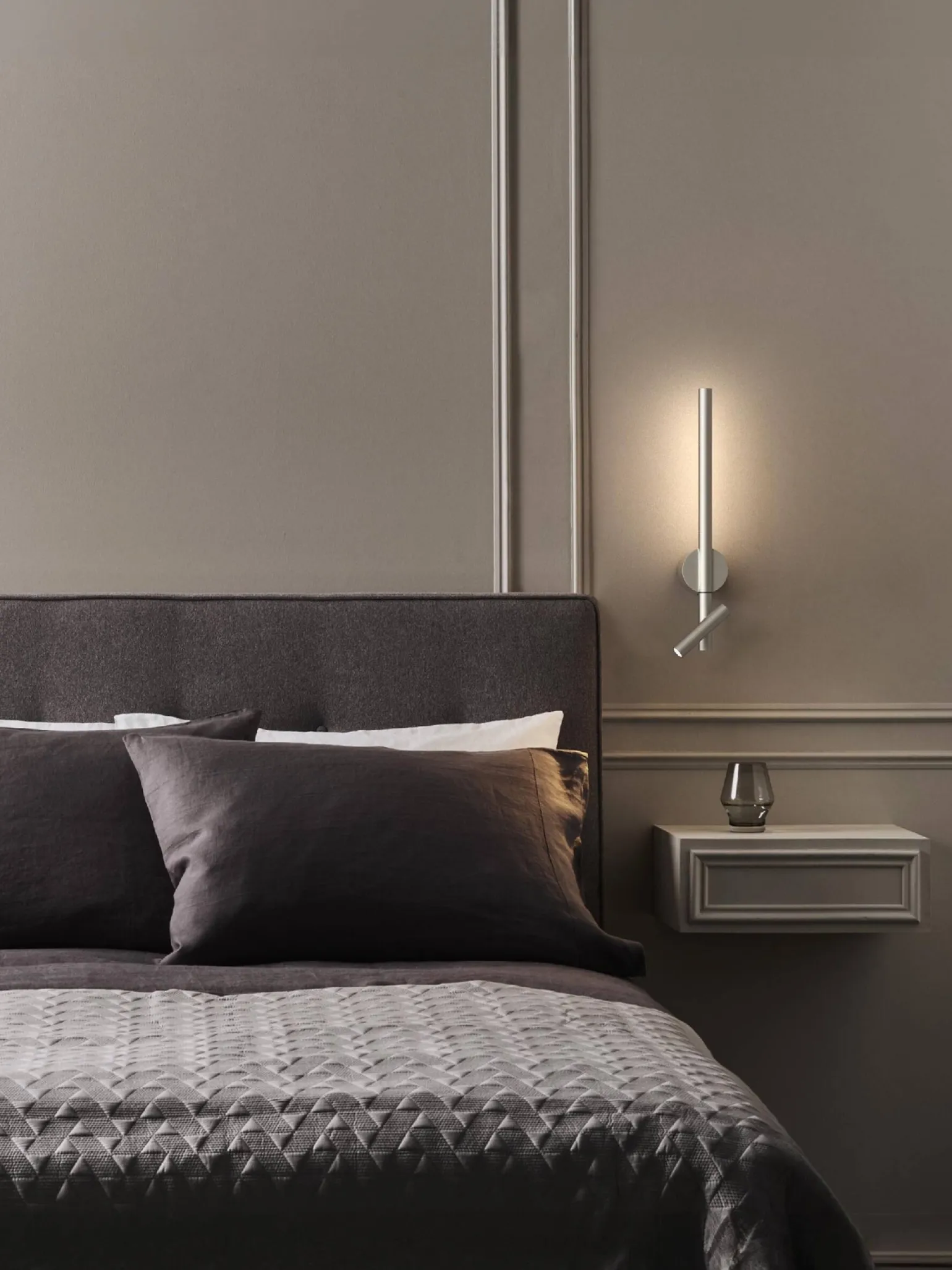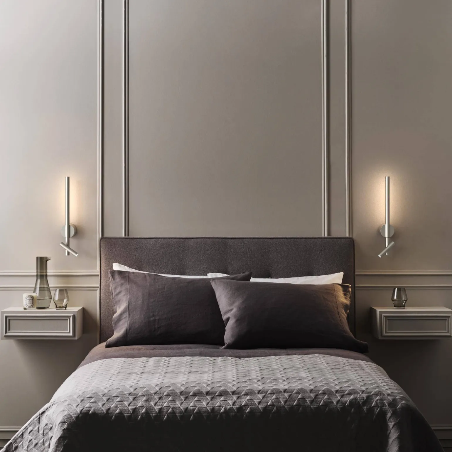 Kinkiety sypialniane w stylu nowoczesnym zyskują na popularności, a Astro Lighting z powodzeniem łączy estetykę z funkcjonalnością. Kinkiet Baton Reader LED wyróżnia się metalową konstrukcją, która nadaje mu elegancki charakter i wytrzymałość. Jego ruchoma oprawa umożliwia skierowanie światła dokładnie tam, gdzie jest potrzebne, co sprawia, że stanowi idealne rozwiązanie do czytania w łóżku lub pracy przy biurku.