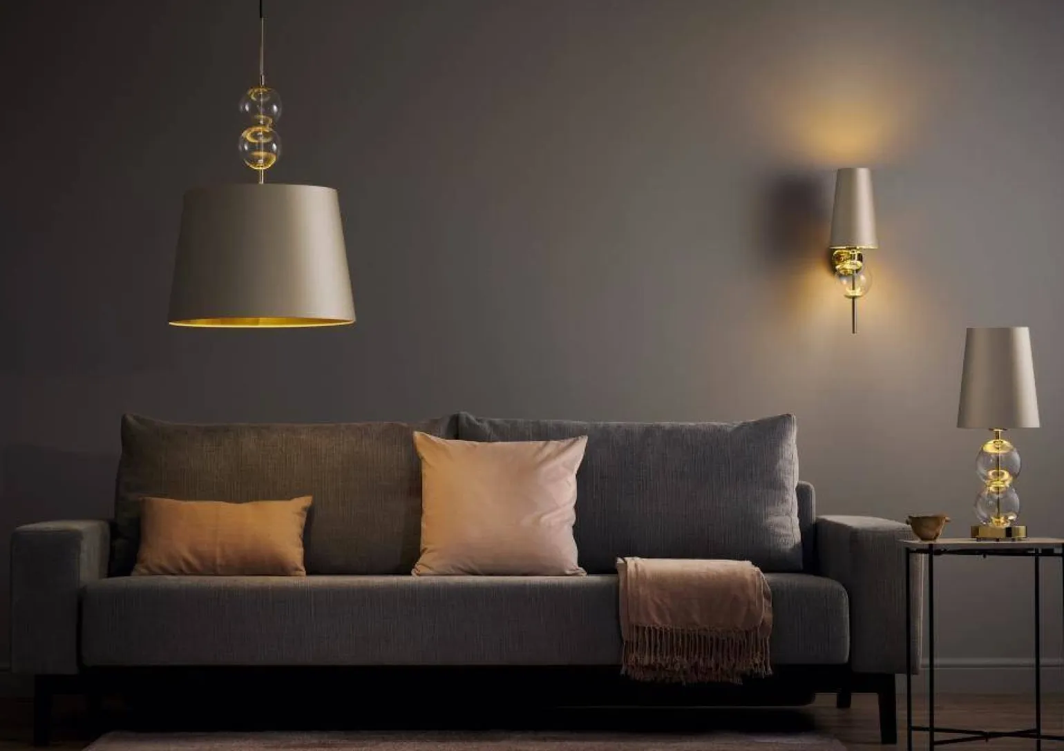 Kinkiet COCO wyróżnia się swoim szampańskim kloszem, który w połączeniu ze złotymi elementami tworzy harmonijną całość. Taka kolorystyka idealnie wpisuje się w trend stylu Hampton, który łączy elegancję z nadmorskim klimatem. Elementy wykonane z szkła, tkaniny i metalu zapewniają trwałość oraz wysoką jakość wykonania. Dzięki temu, kinkiety z abażurem są nie tylko piękne, ale również funkcjonalne.