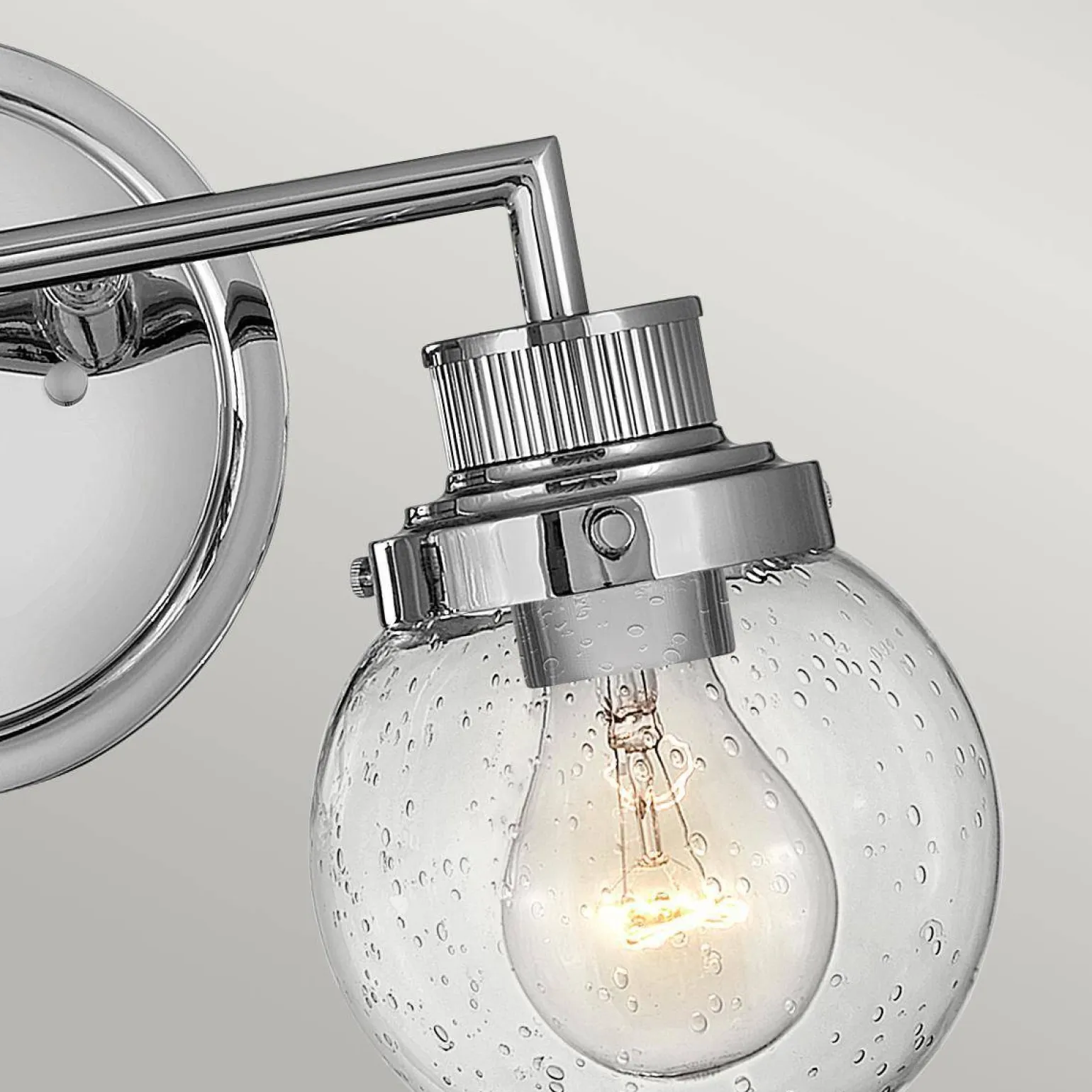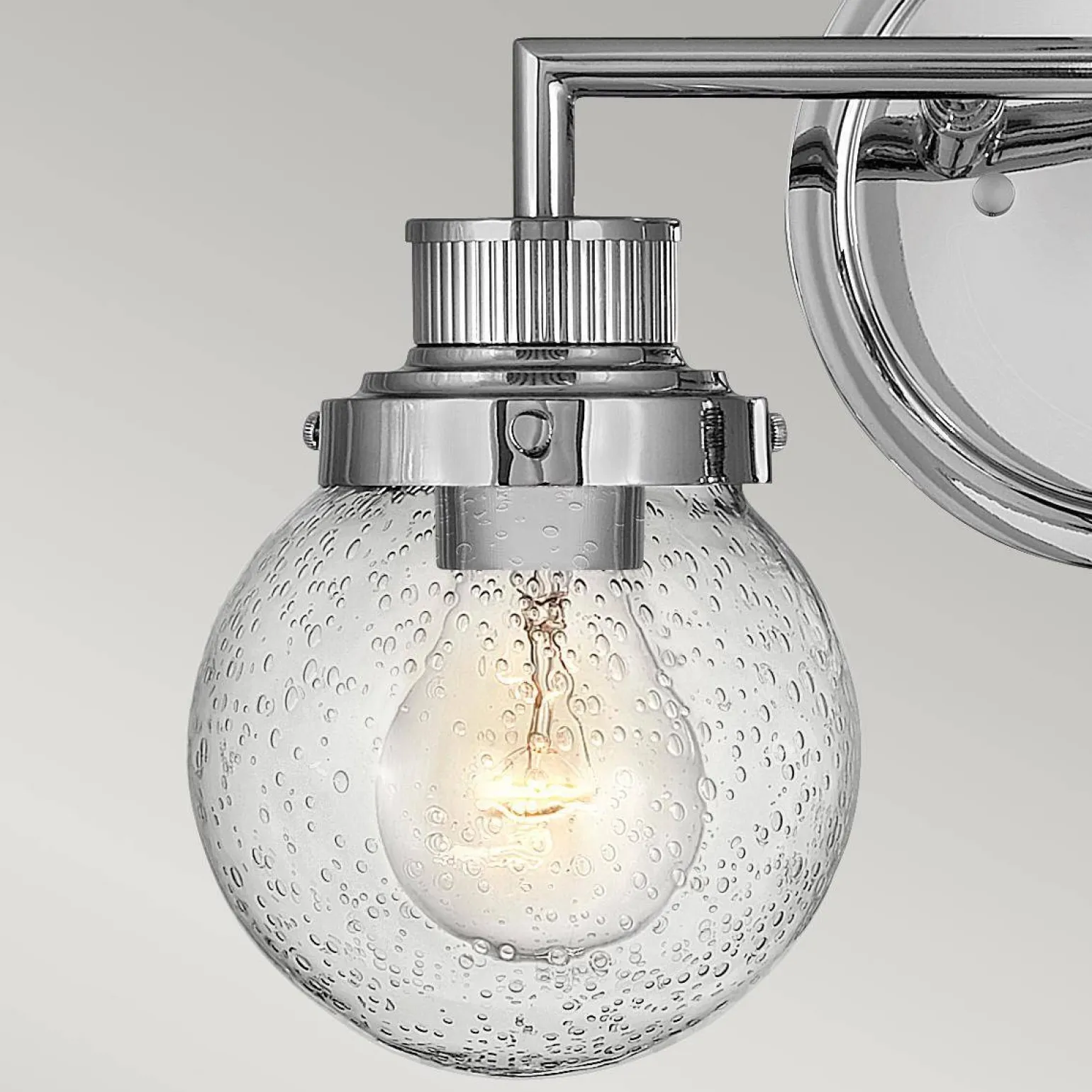 Wykonanie z wysokiej jakości materiałów, takich jak stal oraz szkło, zapewnia trwałość oraz elegancję kinkietu. Przezroczysty klosz wykonany ze szkła z bąbelkami powietrza dodaje uroku i wprowadza niepowtarzalny klimat do każdej łazienki. Kinkiet jest doskonałym wyborem przy lustrze, co czyni go funkcjonalnym elementem w codziennej pielęgnacji i przygotowaniach.