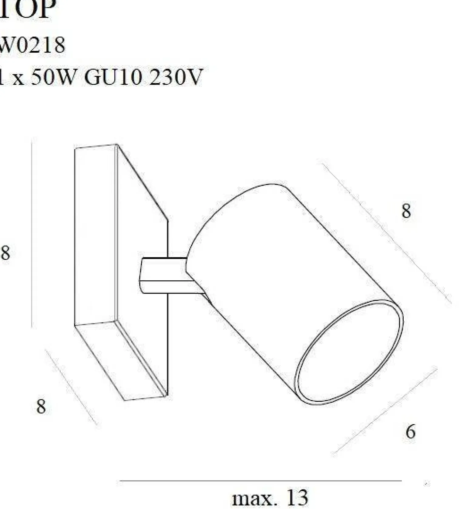 Kinkiet TOP1 wyposażony jest w trzonek typu GU10, co umożliwia swobodny dobór źródła światła. Mimo braku źródła światła w komplecie, użytkownik ma możliwość wyboru zamiennika o maksymalnej mocy 50W, co zapewnia odpowiednią jasność w każdym pomieszczeniu. Użytkowanie jest niezwykle wygodne, dzięki prostemu systemowi montażu oraz możliwości regulacji kierunku światła, co czyni go idealnym wyborem do sypialni, salonów oraz korytarzy.