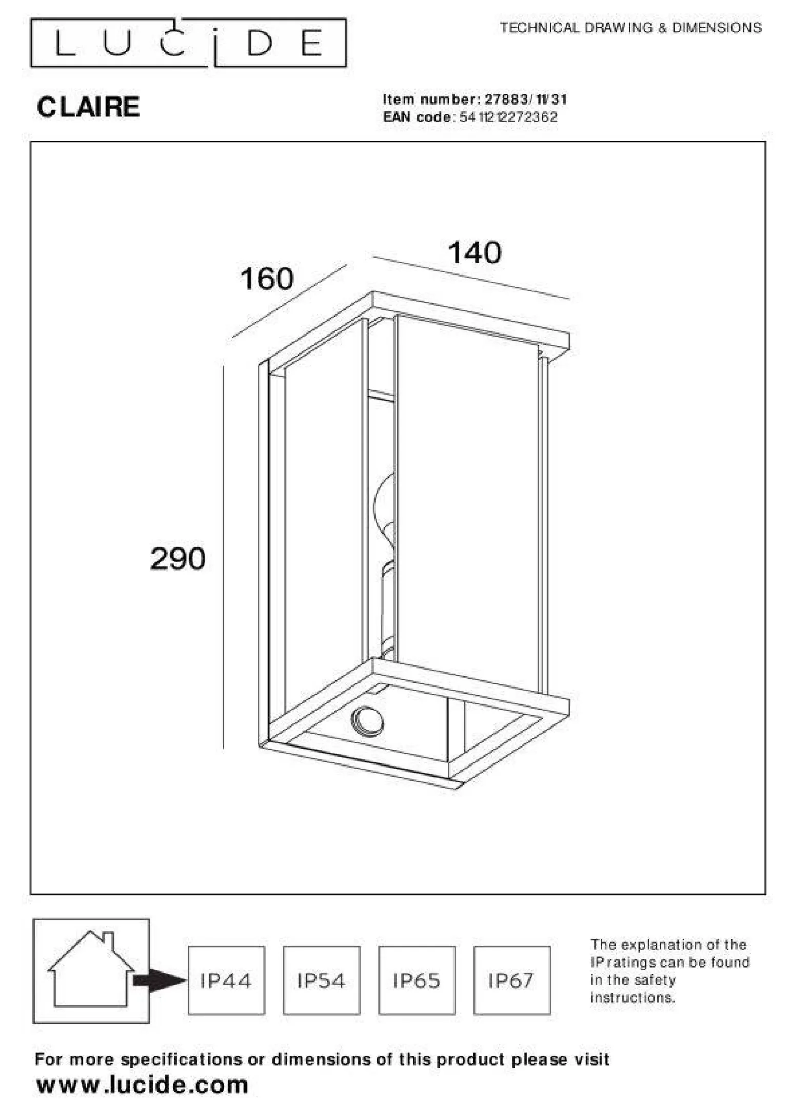 Stworzona z trwałych materiałów, lampa CLAIRE charakteryzuje się wysokim stopniem ochrony IP54, co oznacza, że jest odporna na działanie wody oraz pyłu. Dzięki temu kinkiety na elewację doskonale sprawdzą się w każdych warunkach atmosferycznych, zapewniając długotrwałe i bezproblemowe użytkowanie. Nie musisz więc obawiać się o ich trwałość, nawet w trudniejszych warunkach zewnętrznych.