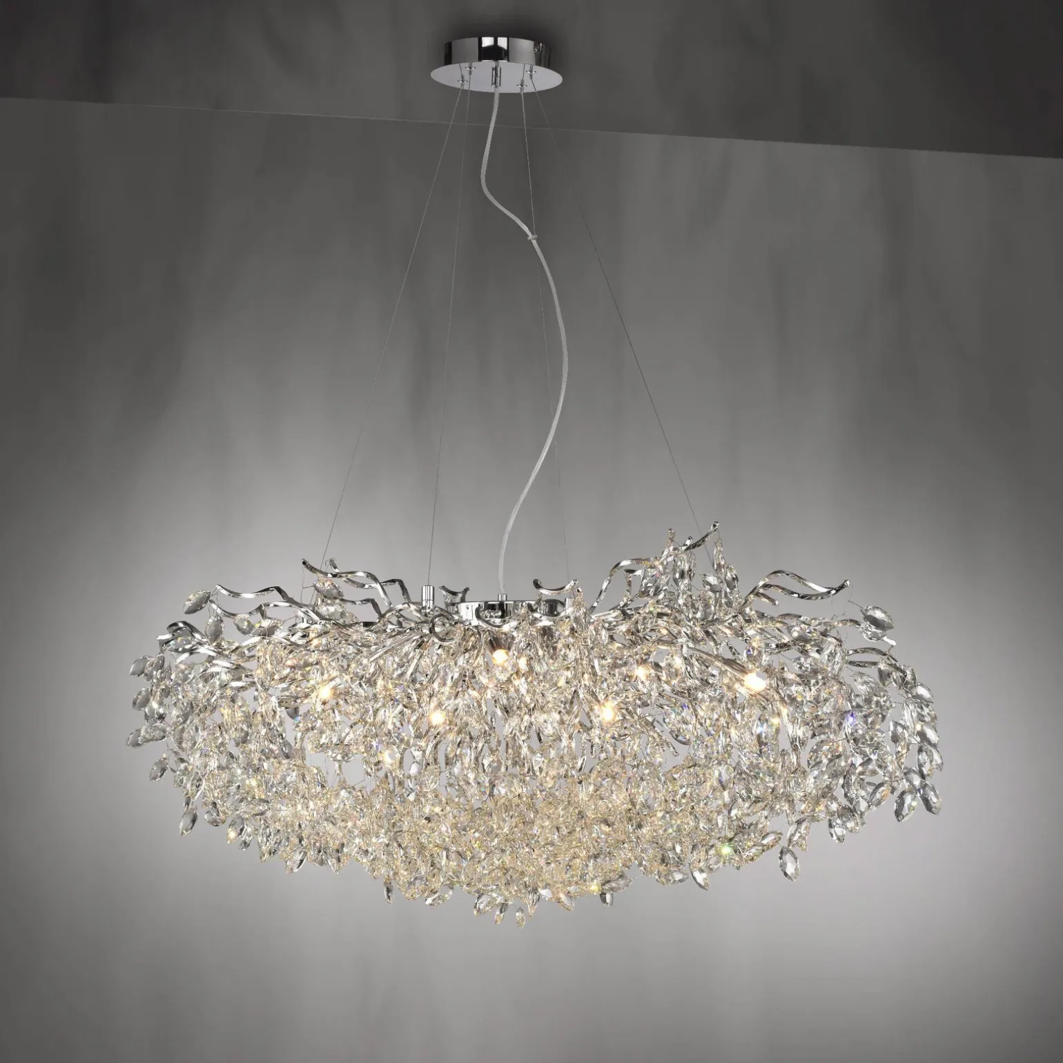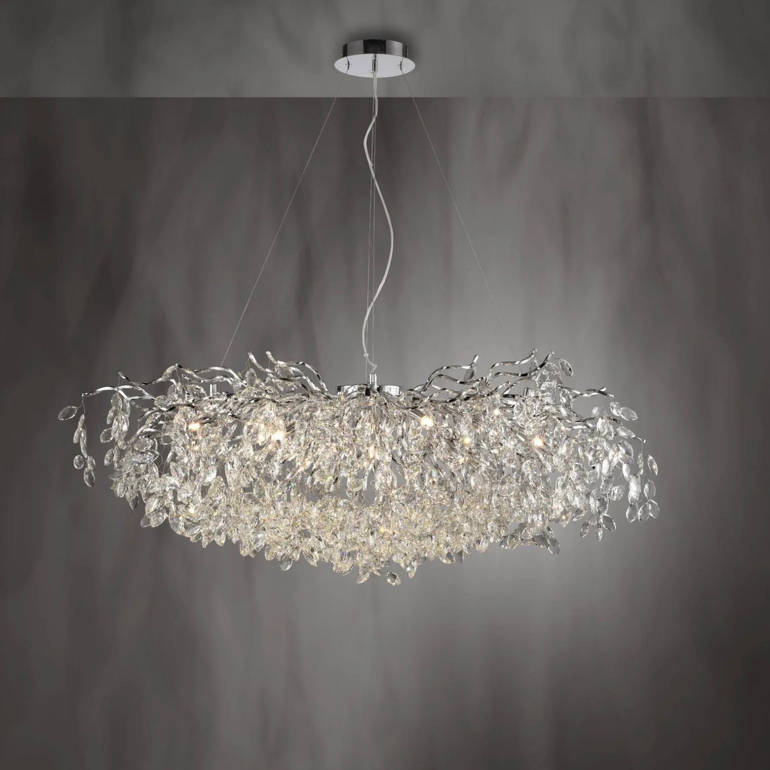 Kryształowa lampa wisząca RICICLE CHROM (2036-17) od renomowanej marki Paul Neuhaus to doskonały sposób na wprowadzenie odrobiny elegancji oraz luksusu do każdego wnętrza. Idealnie nadaje się do salonu, sypialni czy nawet renomowanego hotelu. Dzięki połączeniu chromu z kryształowymi akcentami, lampa ta przyciąga wzrok, stając się centralnym punktem pomieszczenia.