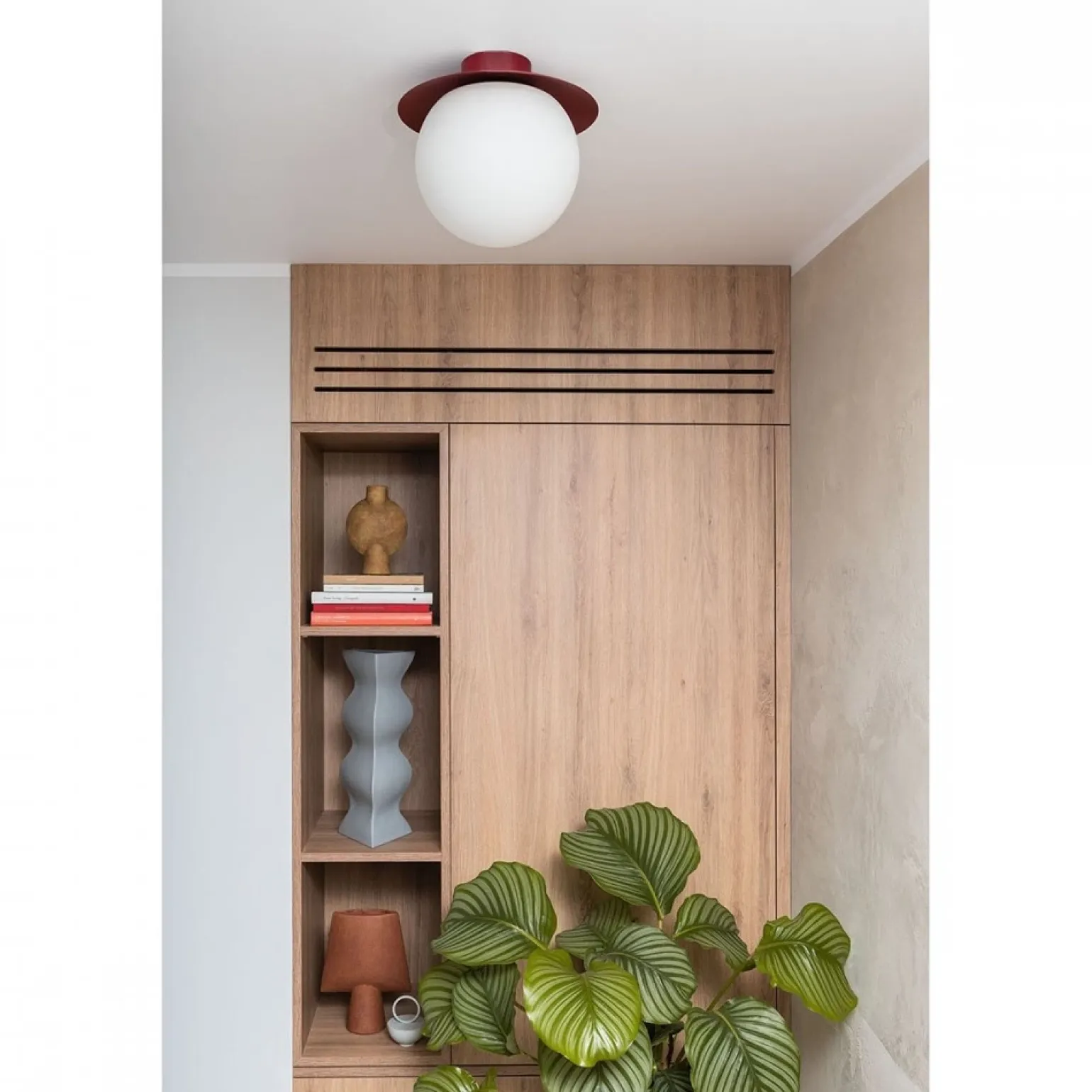 WYbierz lampę sufitową KUUL C w kolorze burgundowym, która stanie się kluczowym elementem Twojego wnętrza. Jej maksymalna moc wynosząca 15W w połączeniu z jednym źródłem światła sprawia, że jest to idealne rozwiązanie dla przestrzeni, które wymagają subtelnego, aczkolwiek przyjemnego oświetlenia. Dowolnie dobierając źródło światła, możliwe jest dostosowanie intensywności oraz barwy światła, co znacząco wpłynie na atmosferę panującą w danym pomieszczeniu.