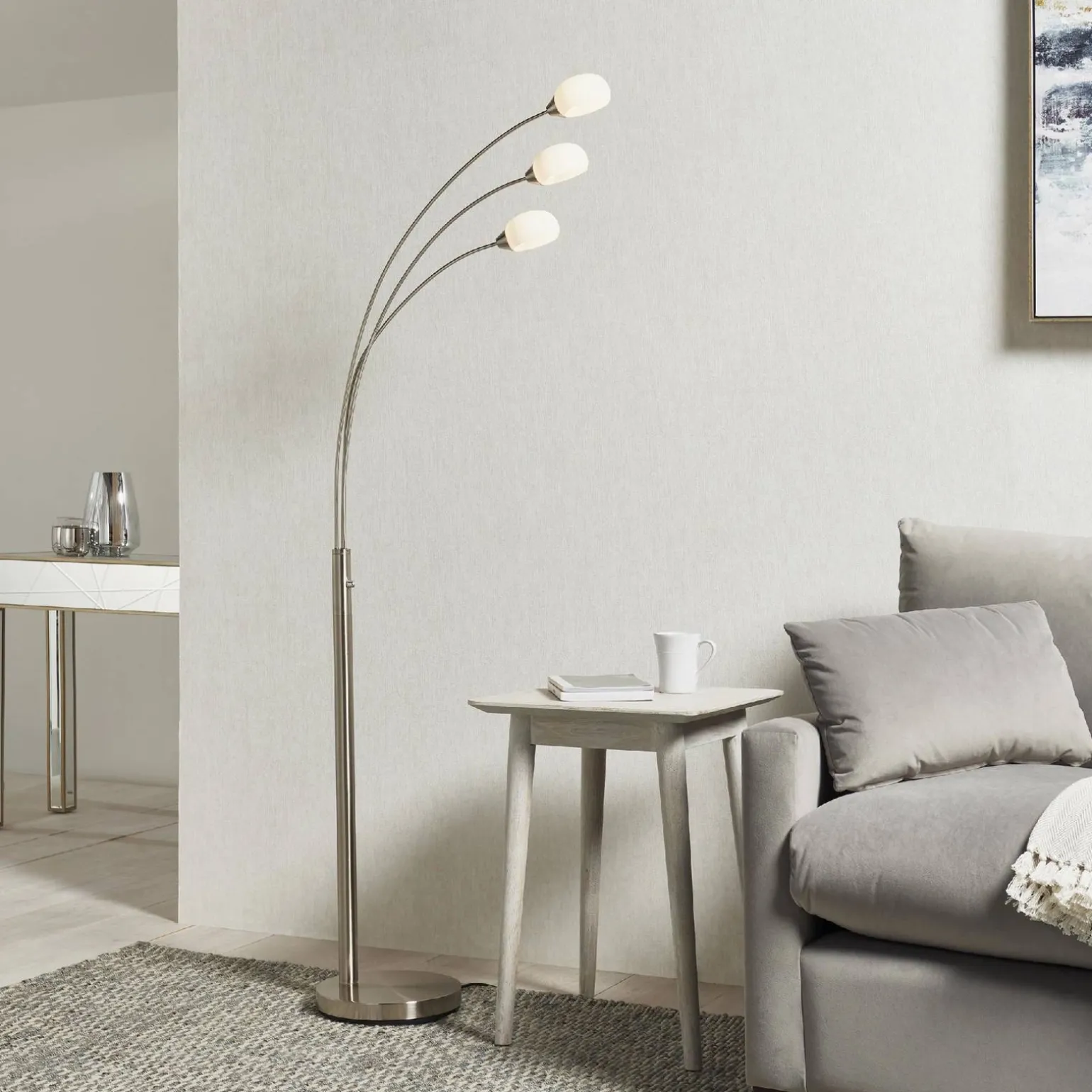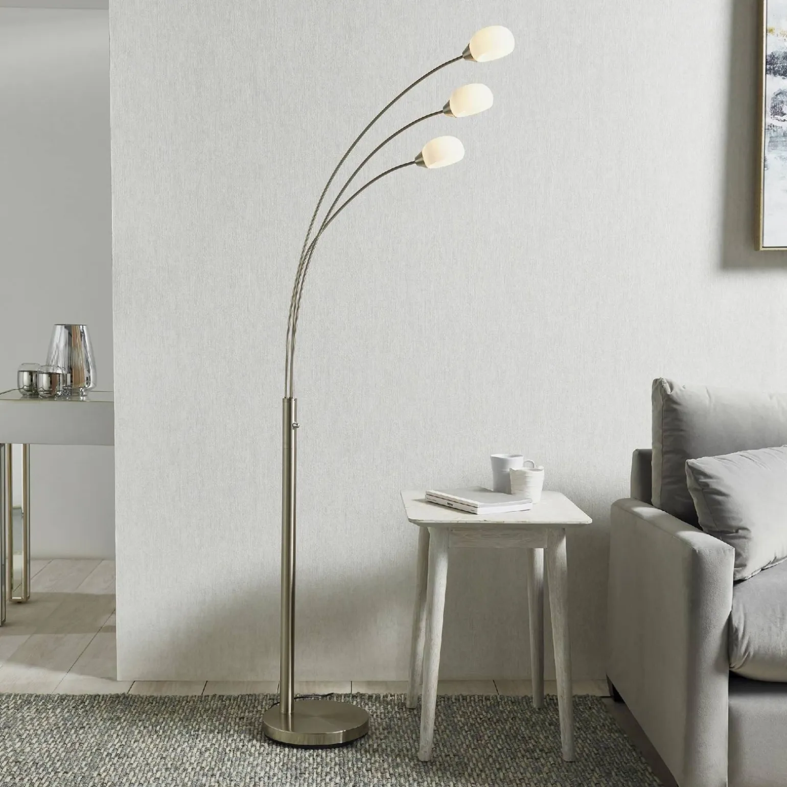 Lampa Podłogowa Jaspa (76567) marki Endon to elegancki i nowoczesny dodatek do każdego wnętrza, który wprowadzi niepowtarzalny klimat do Twojego salonu. Jej stylowy design łączy w sobie satynowy nikiel oraz białe szkło, co sprawia, że lampa nie tylko oświetli przestrzeń, ale również stanie się wyrazistą ozdobą każdego pomieszczenia. Z jej pomocą będziesz mógł stworzyć przytulną atmosferę, idealną do relaksu oraz spotkań z rodziną i przyjaciółmi.