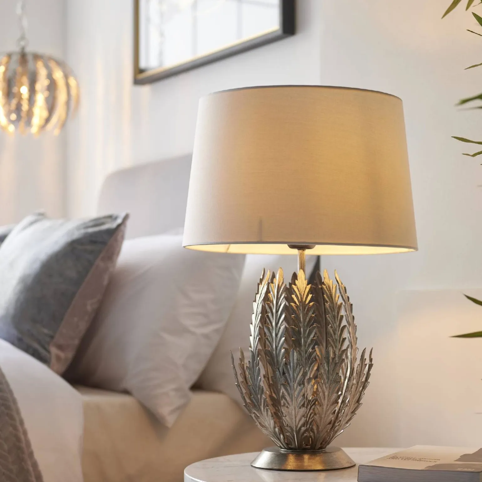 Lampa Stołowa Delphine marki Endon to niezwykły element, który wznosi Twoje wnętrze na zupełnie nowy poziom. Została stworzona z myślą o sypialniach, gdzie elegancja łączy się z nowoczesnością. Jej srebrny kolor w połączeniu z kością słoniową tworzy subtelny kontrast, który doskonale wpisuje się w styl Hampton oraz modern classic.